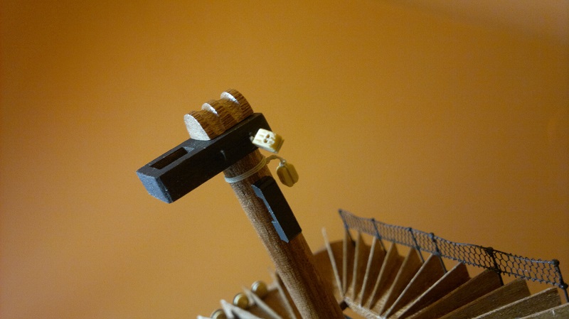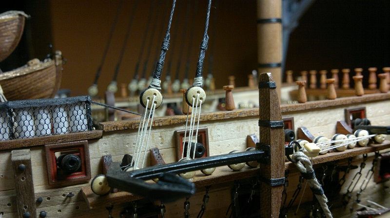 I czas na kotwicę Fajnie to tam na forach zrobiliście wzorowałem się nie raz na relacjach. Kotwica sama w sobie w miarę ok ta z zestawu ale poprzeczka do kosza. Poprzeczkę postanowiłem wykonać od nowa. Troszkę obróbki docinki i jest. Na koniec jakieś owijki dla oka:) z dołączonymi bloczkami.