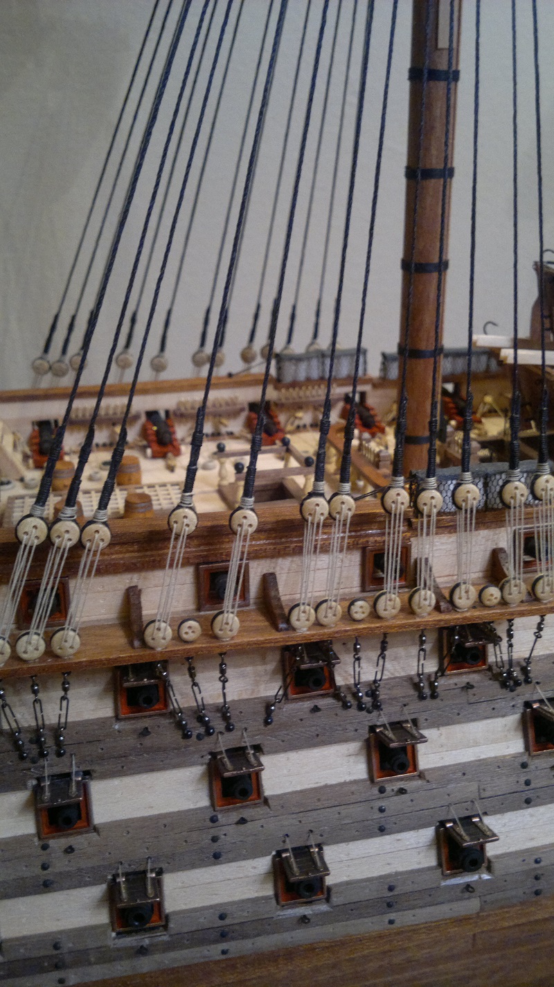 Zaprezentuję teraz wanty i wiązania jufersów. Wanty wykonałem z linek 1.0mm z firmy Amati a wiązanie jufesów 0.25mm. Sporo roboty naciągania też i nieudanych prób ale jak dla mnie wyszło super. Takielunek olinowanie dodaje uroku żaglowcom a to dopiero początek Pozdrawiam ps. z wyblinkami to będzie jazda