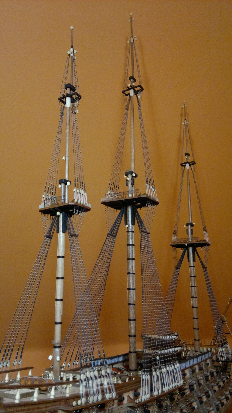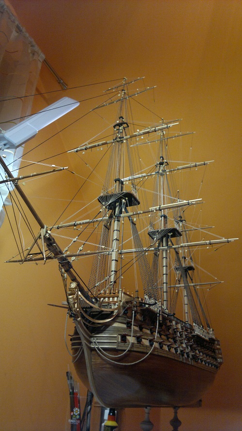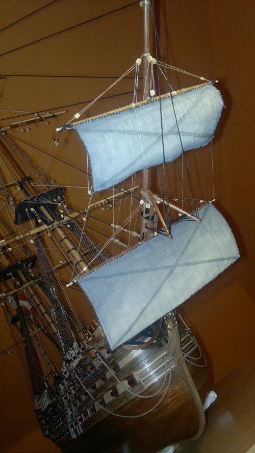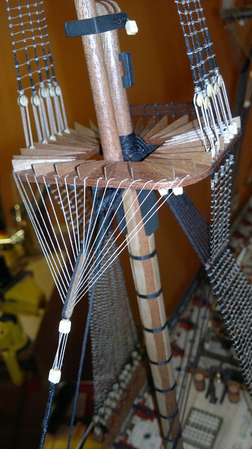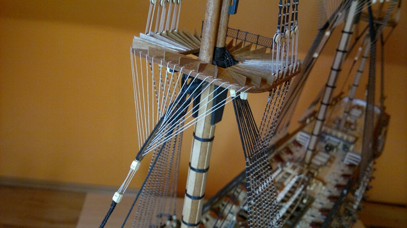 Jak w przyszłości będziesz robił przewiąz bukszprytu (gammoning), to polecam wątek Jarka (jarcio), który świetnie to opisał i zilustrował w cyklu o olinowaniu na HMS Victory: