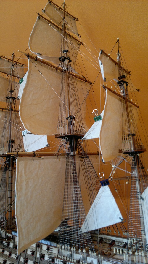 Próbny etap wylądował w koszu i na nowo wiązałem wanty jufersy w części rufowej. By się czegoś nauczyć trzeba czasami spaprać ;)
