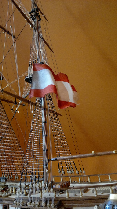 Beczki na rufówce też mi się podobają, ale z wiązaniem to przesadziłeś (bloczki – nie mają logicznego uzasadnienia, ponadto liny nie są nigdzie knagowane).