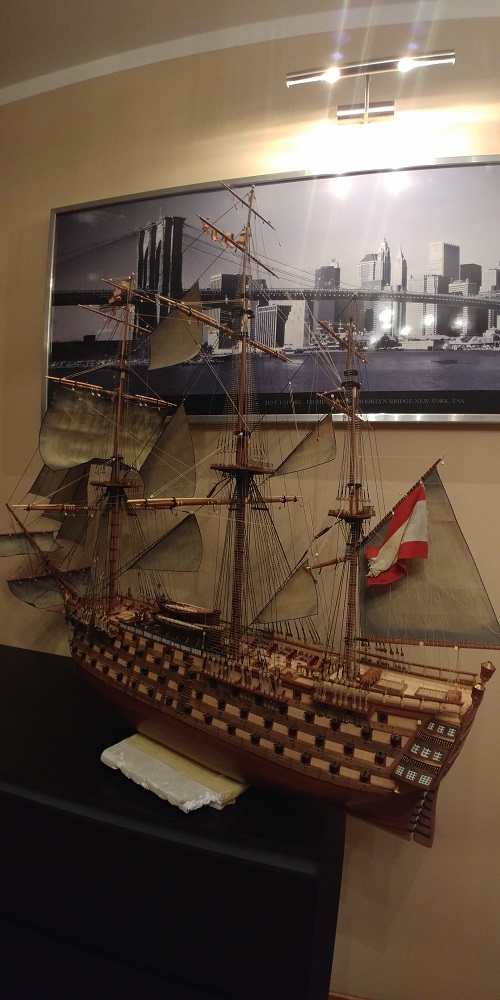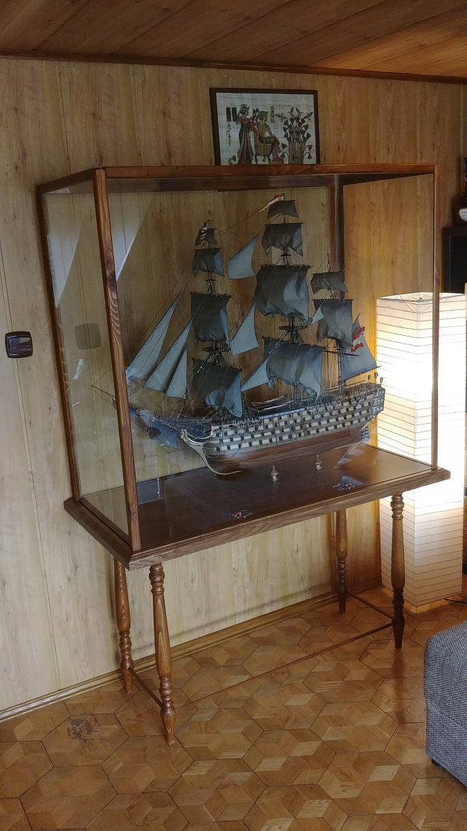 Gratulacje!! Piękna gablota i stolik a model jeszcze ładniejszy!! Te molochy-liniowce mają coś w sobie ;)