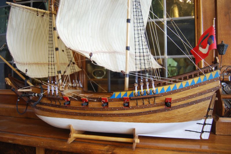 Jak ładowali działo za grotem jak patrzy centralnie w maszt i dodatkowo kołkownica tam stoi ? Jak ładowali resztę dział z szalupą na środku skoro nie chowały się działa za krawędź otworu działowego ? Ktoś się wychylał za burtę z kulą ? A jak przybijali ? Z tali podciągających dział zrezygnowałem bo i tak już się zrobiło tłoczno.