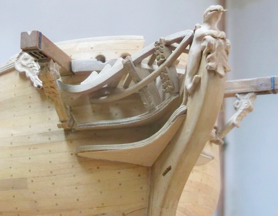 Wklejenie tych gzymsów na rufie było nadspodziewanie trudne, ciągłe pasowanie, klejenie i zrywanie.