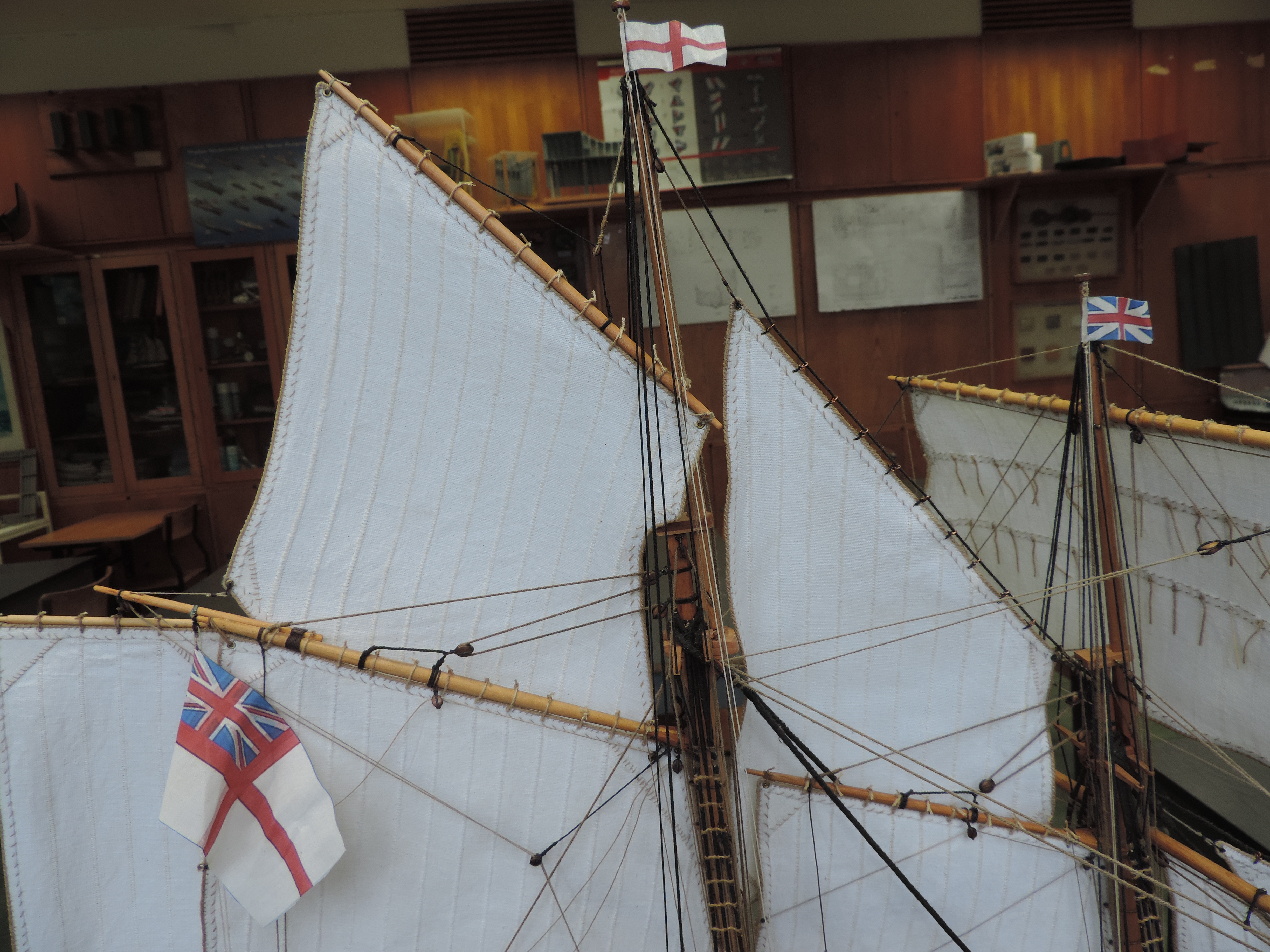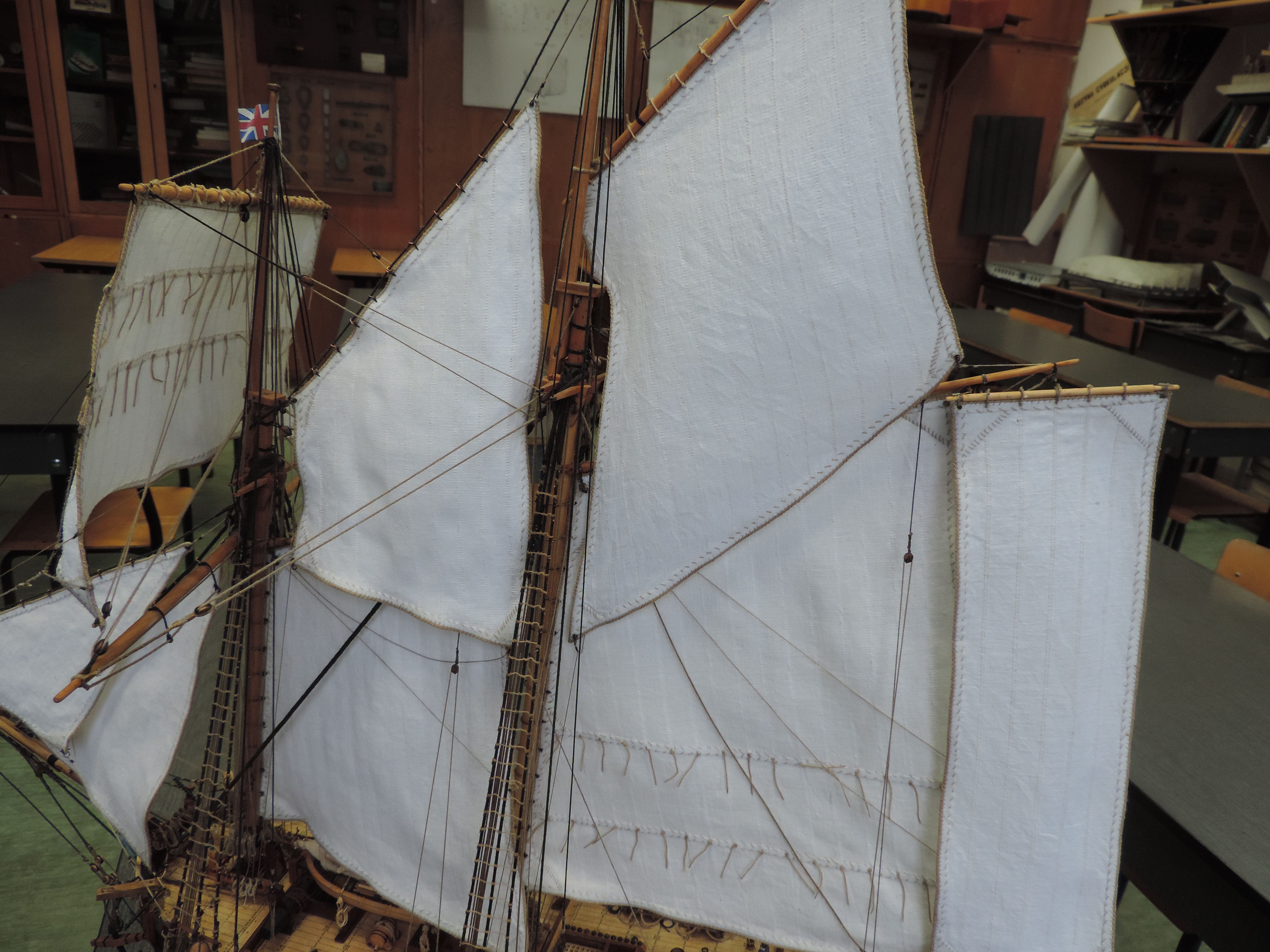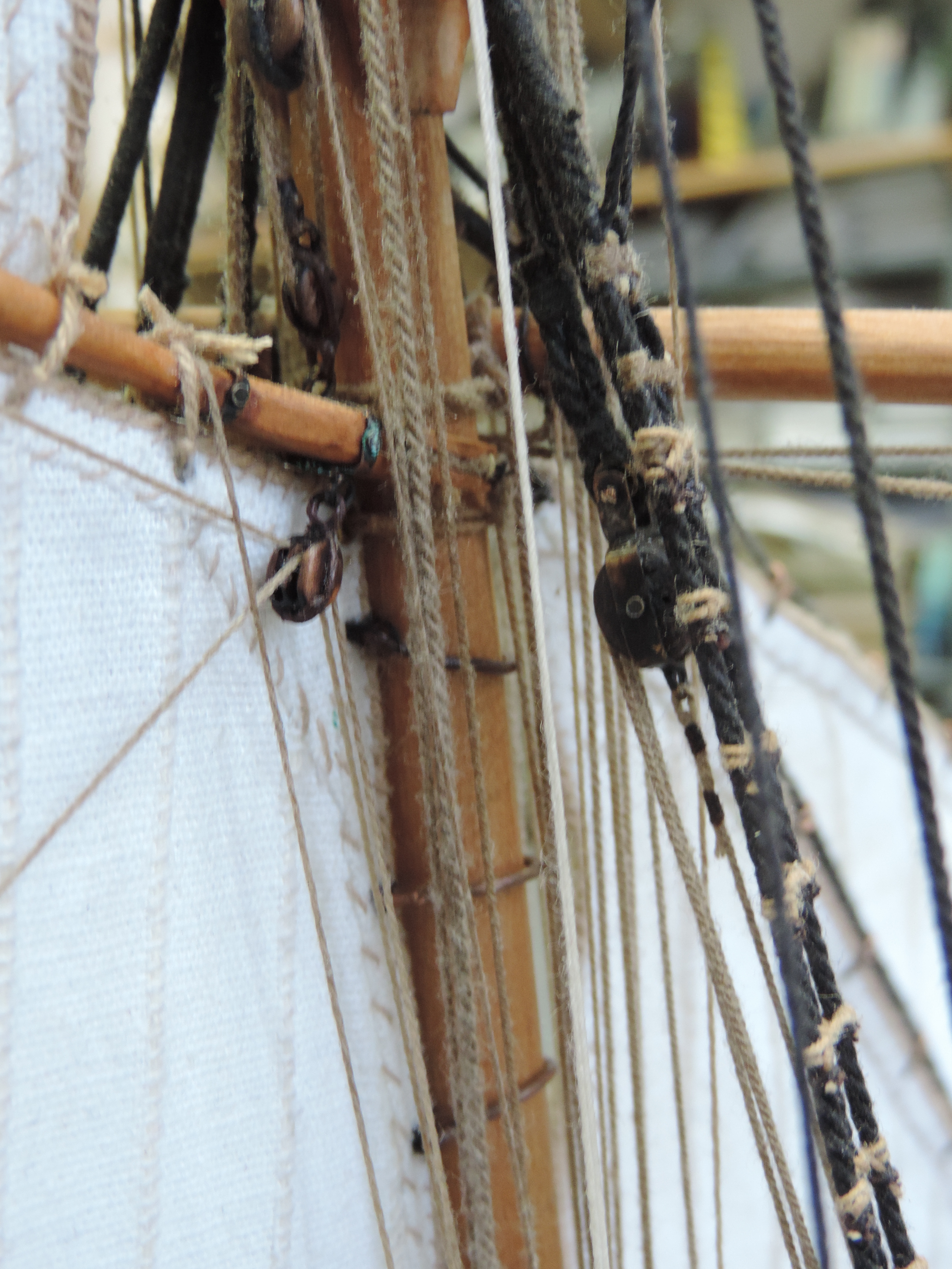 Powoli nadeszło zakończenie prac. Długo nie pisałem bo było tylko przeciąganie linek i żmudne wiązanie. Musiałem dorobić dodatkowe naglownice do żagli , gdyż w planach nie było ożaglowania i tylko widok z żaglami. U mnie ożaglowanie jest pełne.