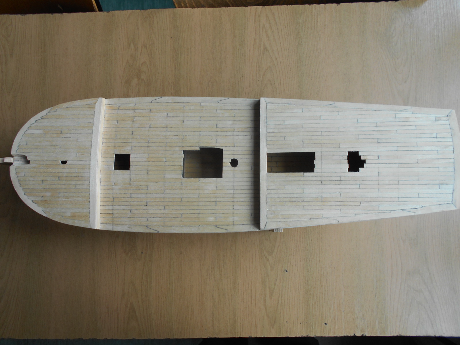 Oblistwowałem pokład główny. Listwy wykonane z brzozy (z dechy podarowanej przez Mariana)