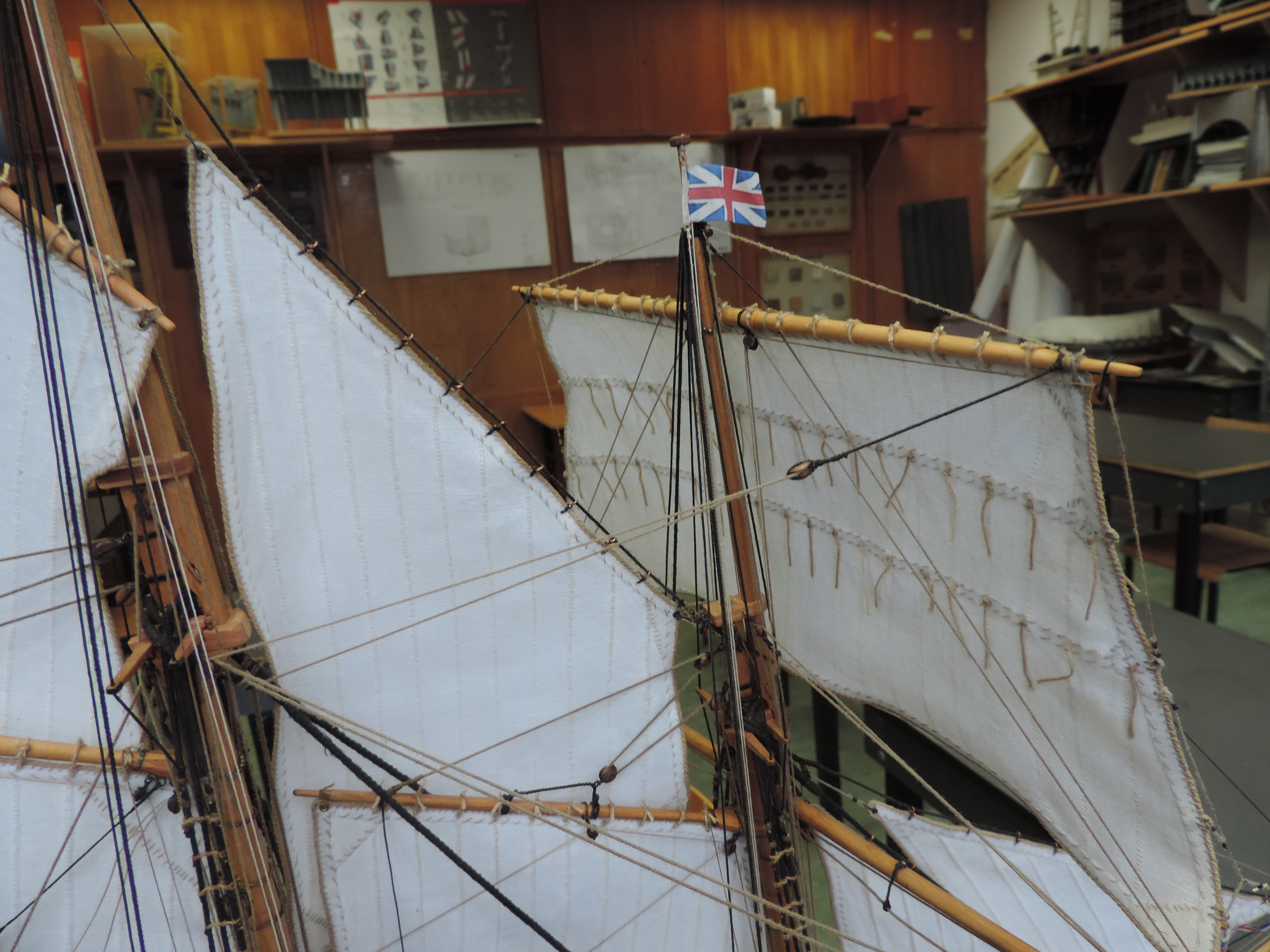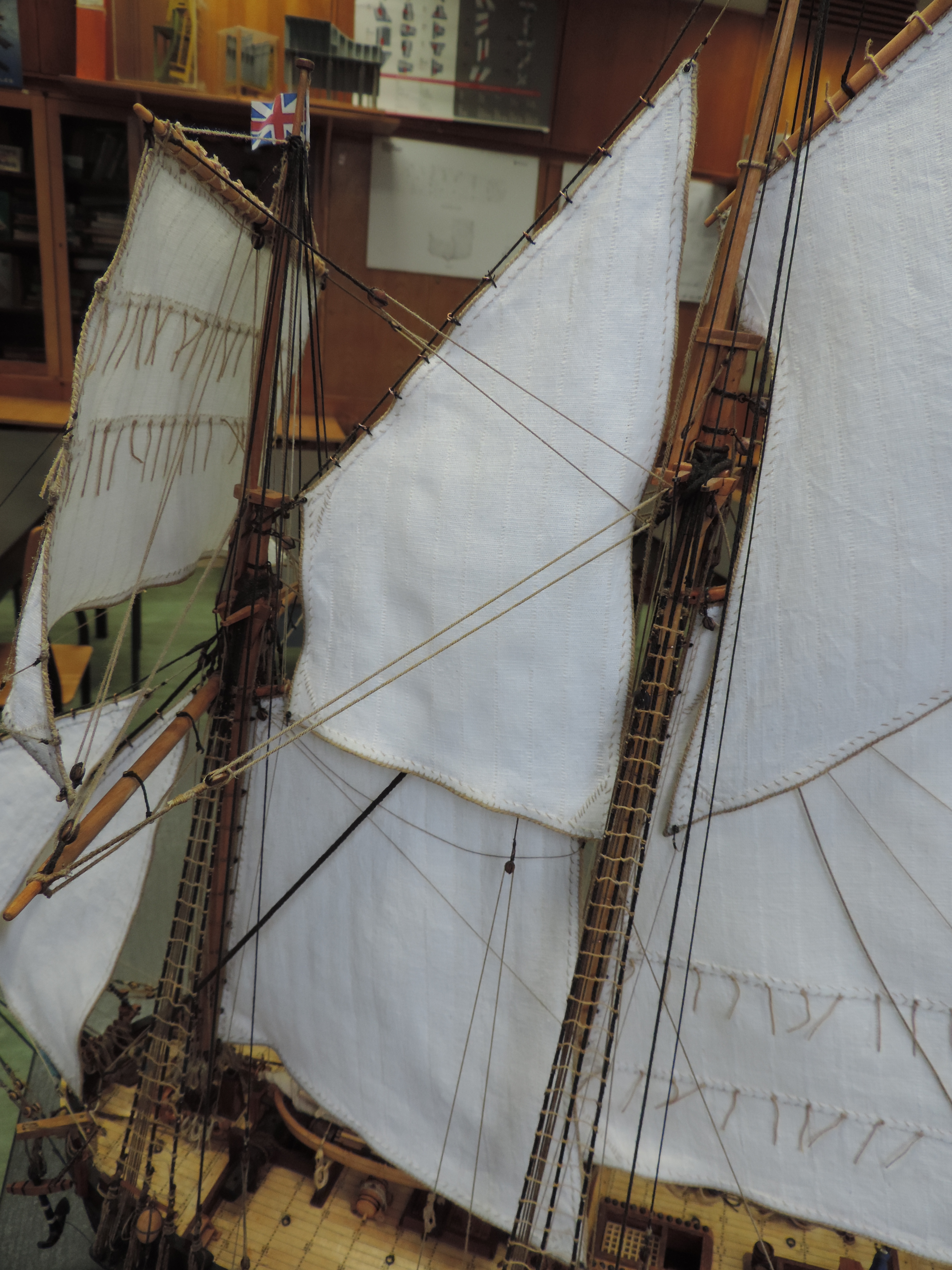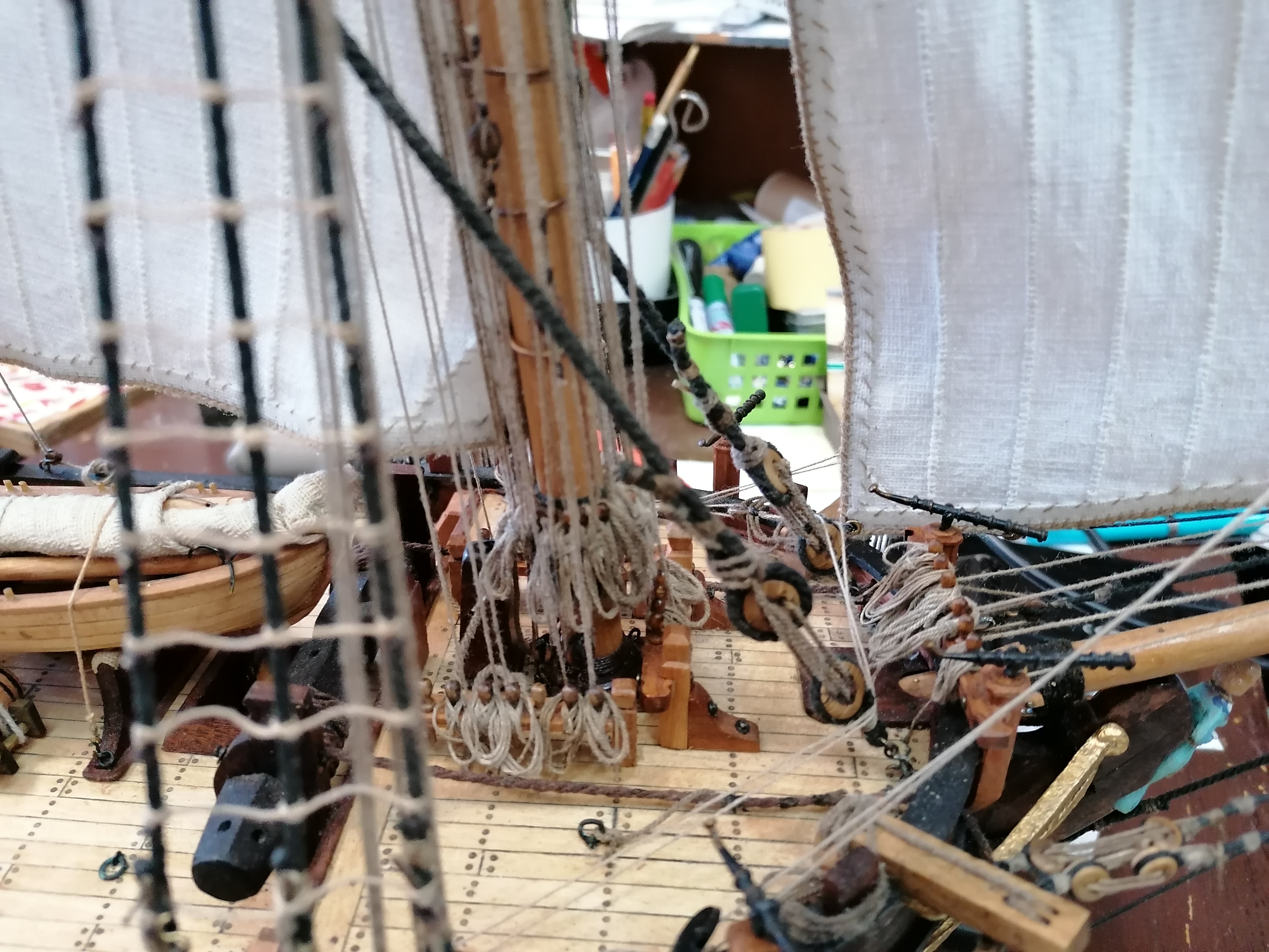 Powoli nadeszło zakończenie prac. Długo nie pisałem bo było tylko przeciąganie linek i żmudne wiązanie. Musiałem dorobić dodatkowe naglownice do żagli , gdyż w planach nie było ożaglowania i tylko widok z żaglami. U mnie ożaglowanie jest pełne.