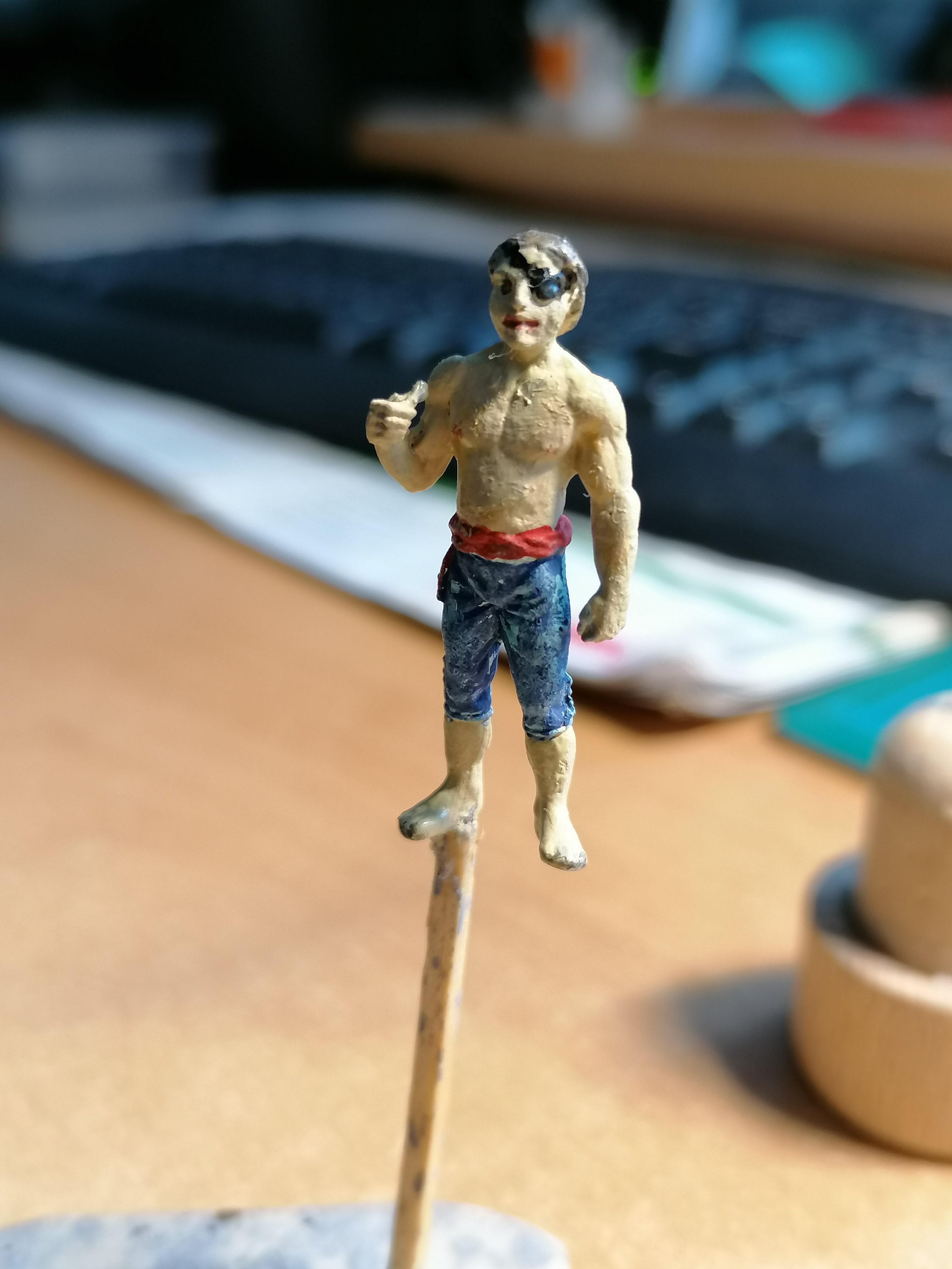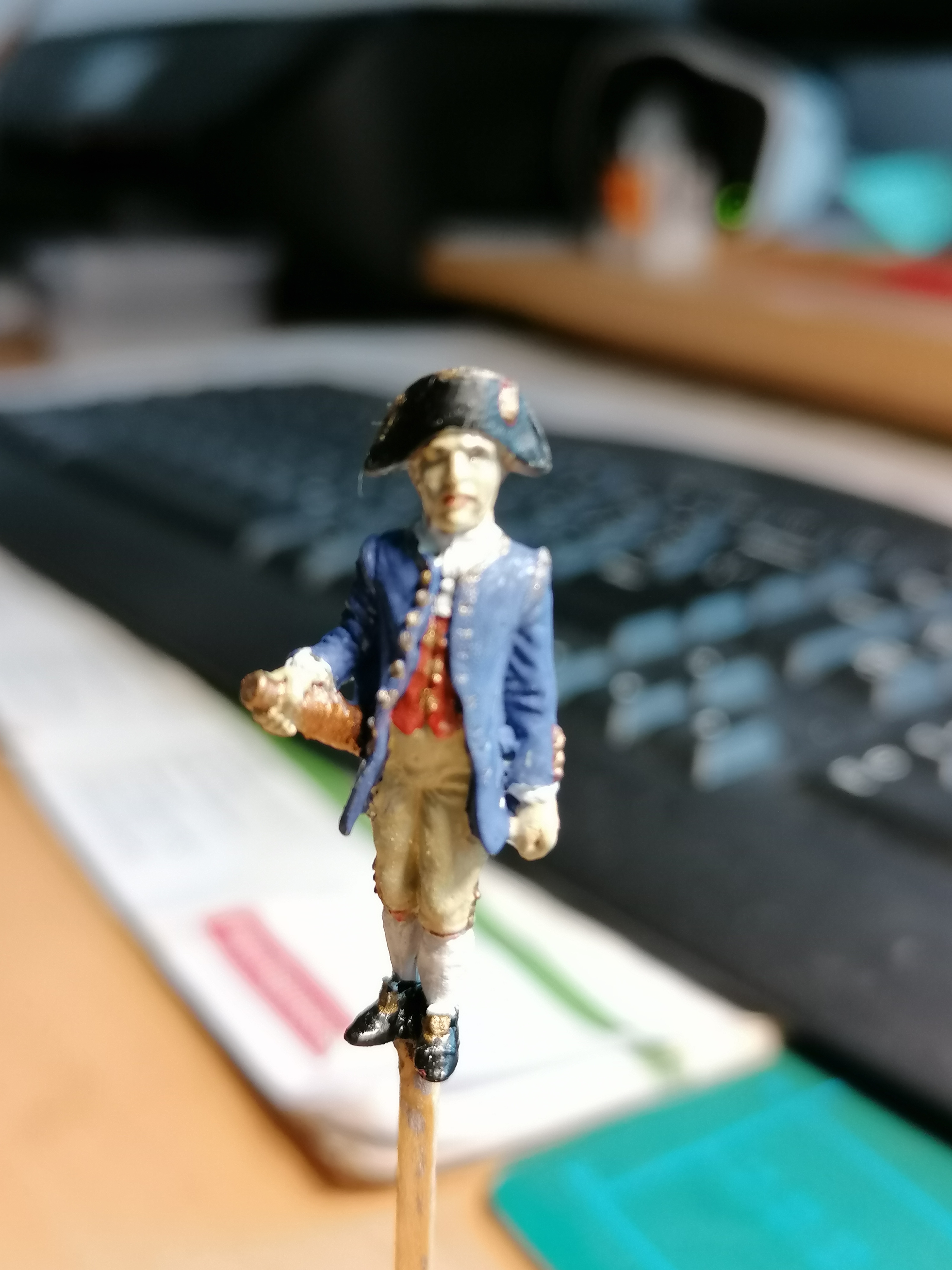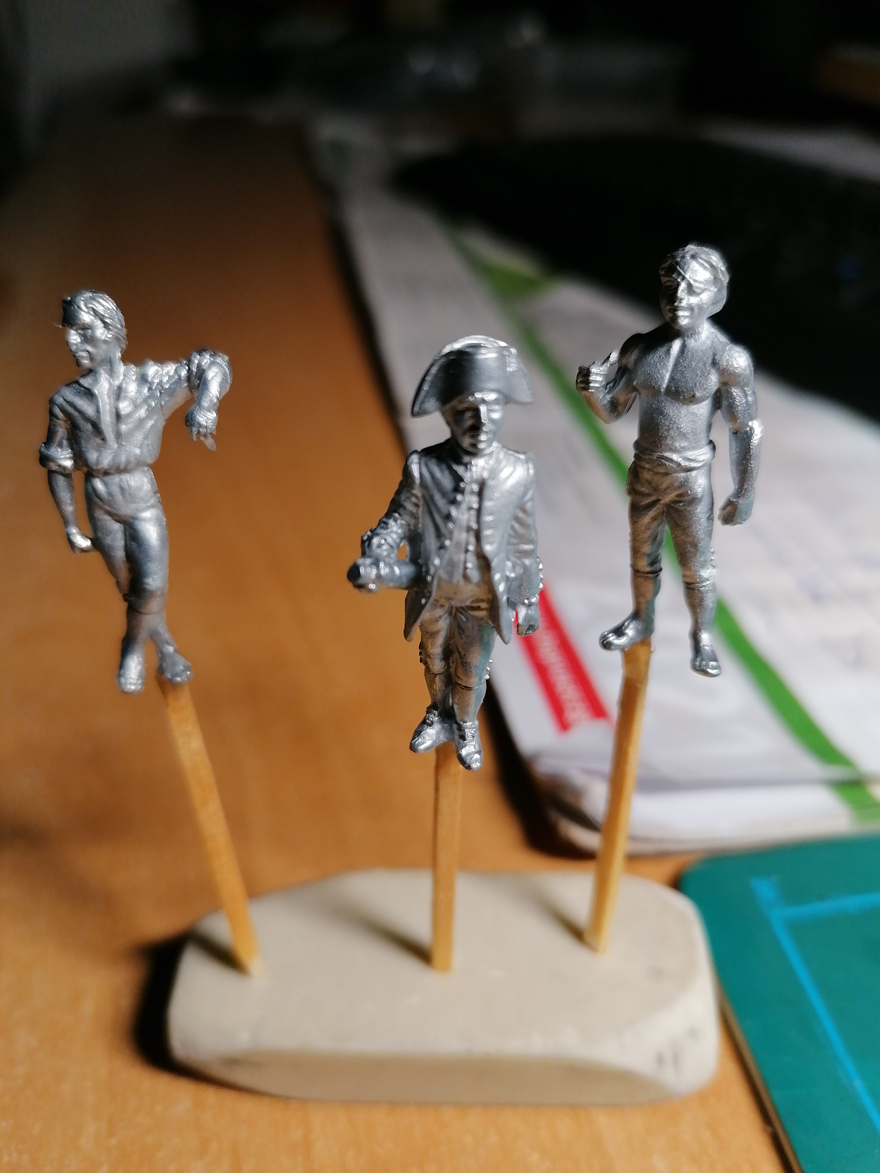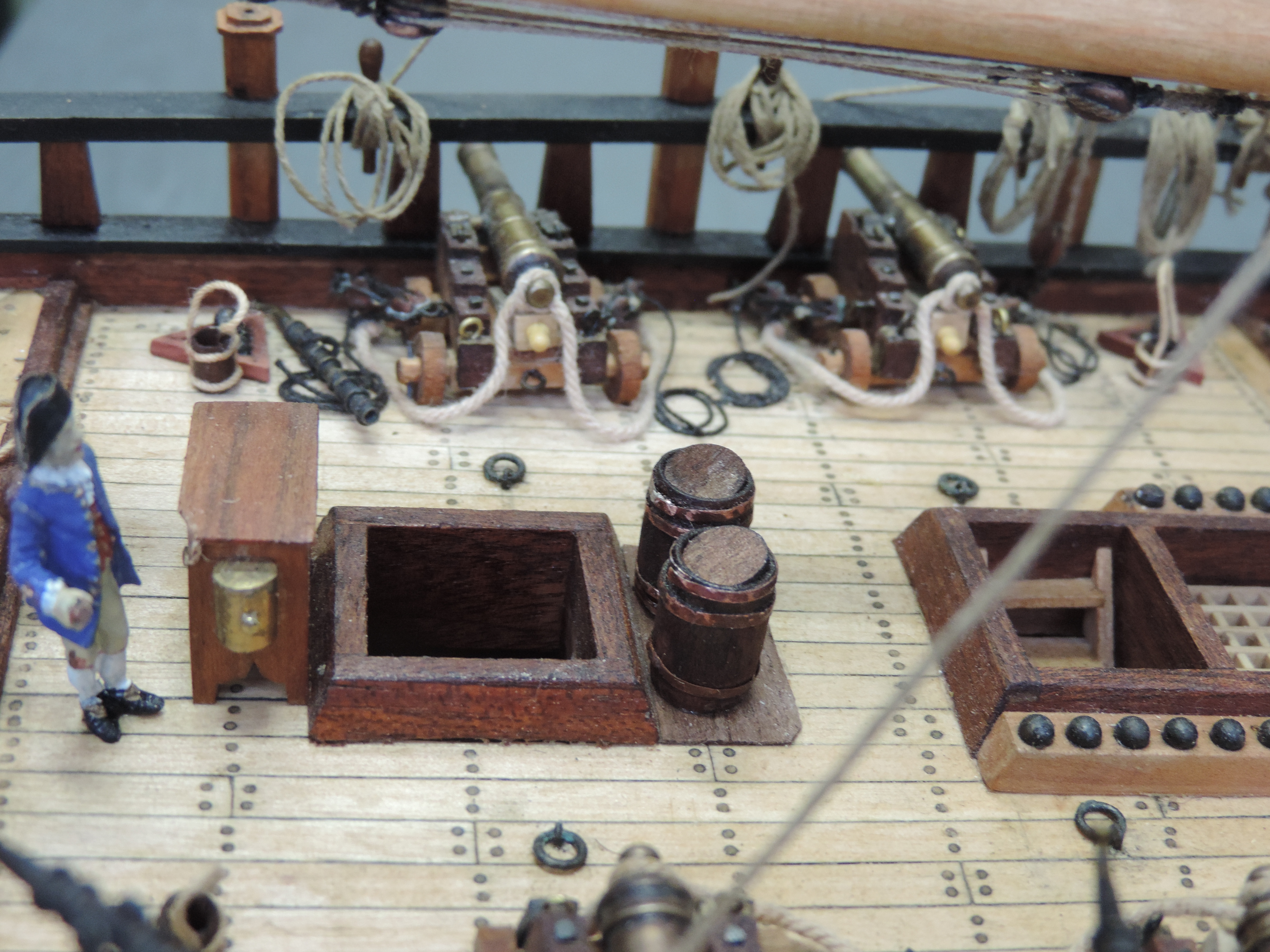 Zakupiłem figurki marynarzy. Wstawiłem trzech załogantów po żmudnym malowaniu , da to efekt porównawczy co do wielkości statku.