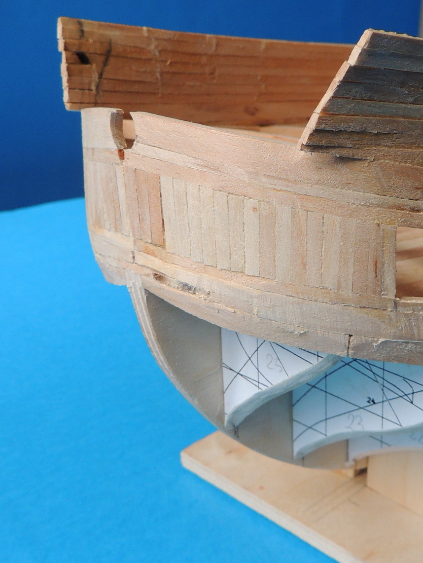Cześć. Ralfee gdybym zrobił tak jak sugerujesz, to grubość nadburcia miałaby około 5 mm. U mnie musi to być jakieś 3mm, jak nie mniej. Nie mam żadnego zdjęcia pod ręką, ale jak spojrzysz na zdjęcia Vasy, to nadburcie ma grubość jednej deski i tak mniej więcej powinno być w moim modelu.