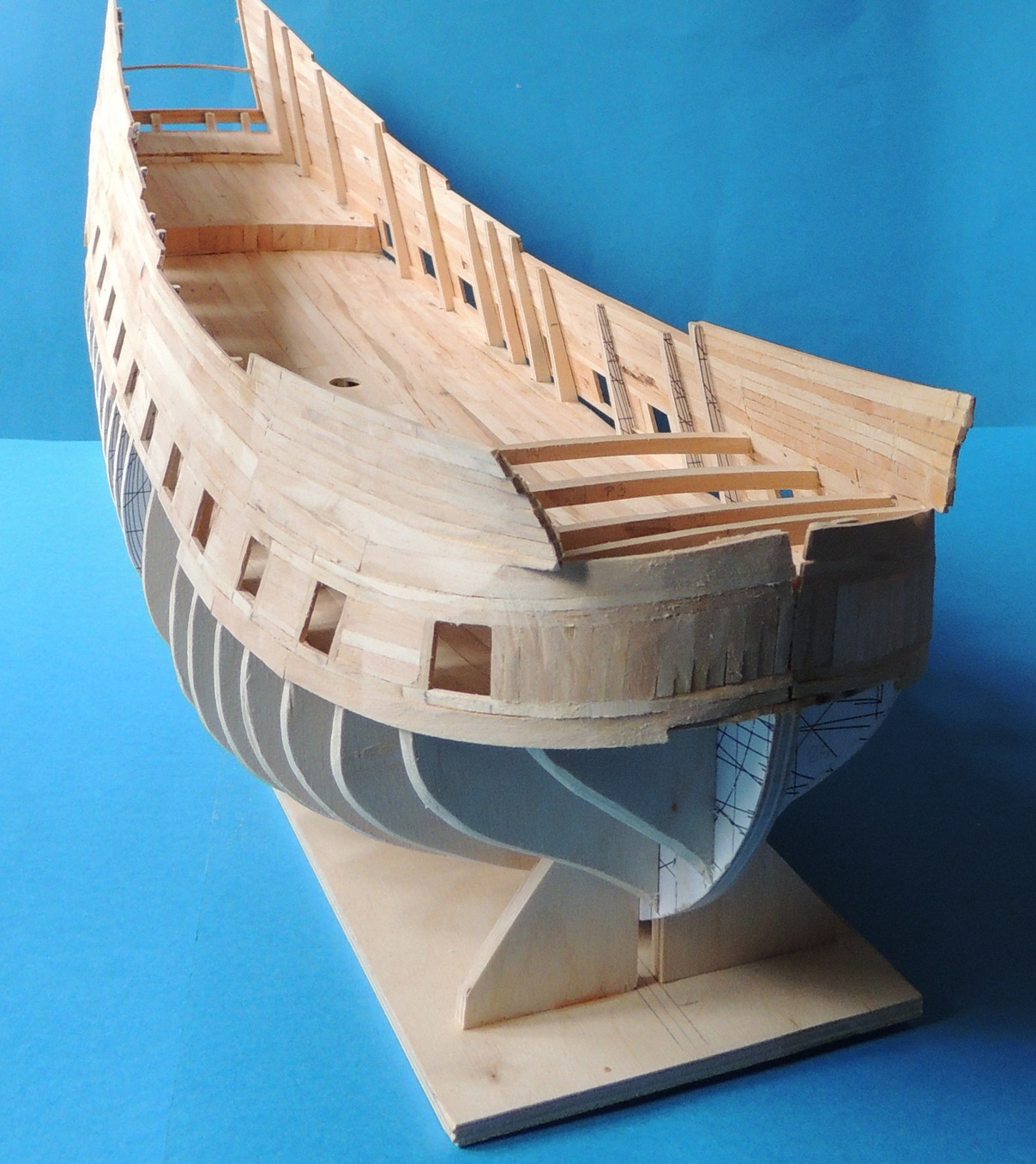Cześć. Ralfee gdybym zrobił tak jak sugerujesz, to grubość nadburcia miałaby około 5 mm. U mnie musi to być jakieś 3mm, jak nie mniej. Nie mam żadnego zdjęcia pod ręką, ale jak spojrzysz na zdjęcia Vasy, to nadburcie ma grubość jednej deski i tak mniej więcej powinno być w moim modelu.