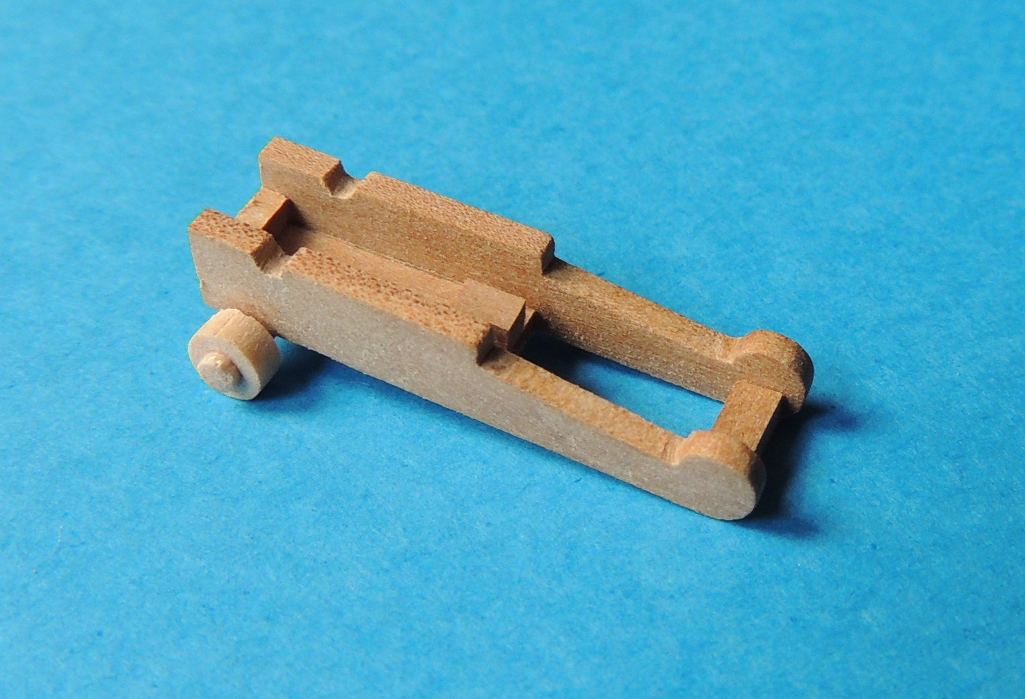Cześć. Powstały kolejne cztery lawety, według rysunku z książki. Pokładzik jest niski, więc stwierdziłem, że właśnie na nim powinny być tego typu lawety. Na koniec wszystko przykryłem kolejnym fałszywym pokładem.