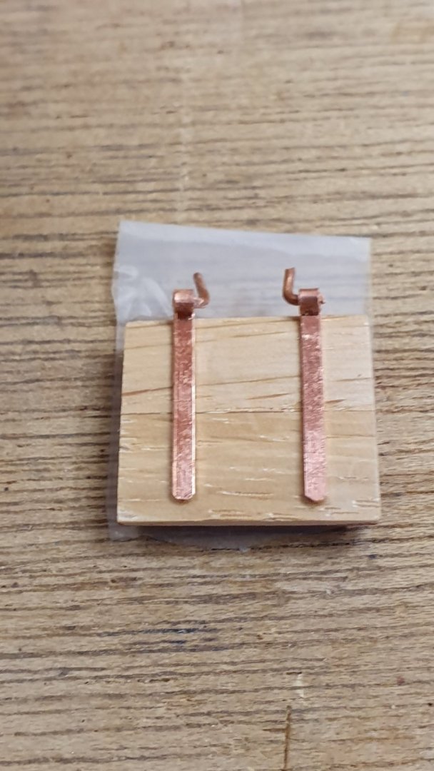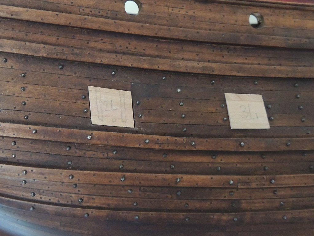 Zabrałem sie za pokrywy ambrazur, chociaż przy dziobie, zostało jeszcze trochę roboty. Zastanawiam się jak wykonać zawiasy. Czy wykonać po prostu nieruchome atrapy, czy pomęczyć się z ruchomymi ? Czy lepiej będzie kupić rurki mosiężne np. fi 1mm i do tego cienka blaszka i drut, czy może lepiej powywijać z blaszki? Hmm... :?: