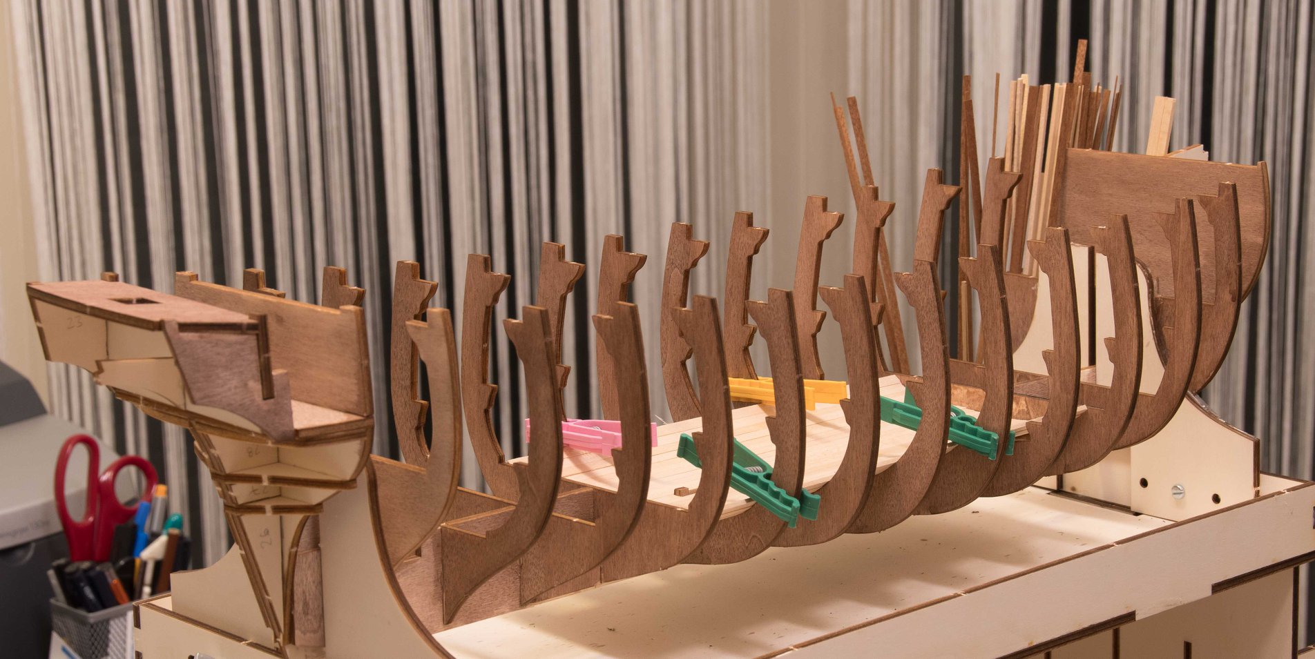 - zgodnie z sugestią Piotrze - maskuję wręgi fornirem. Muszę jeszcze od Ciebie skopiować te hamaki, trochę późno, ale może coś się uda.