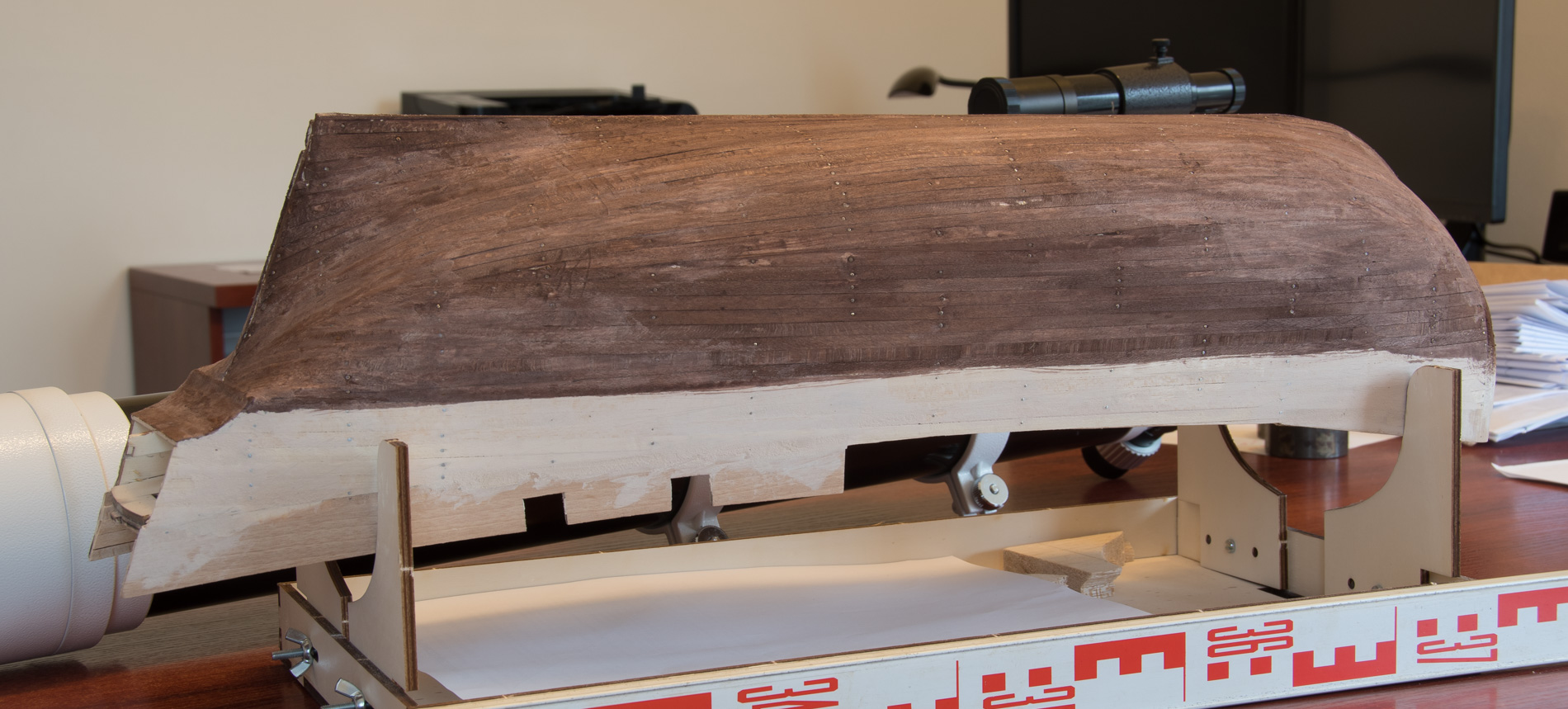 Dobry kadłub, wystarczyło zamknąć wręgi za pomocą forniru.