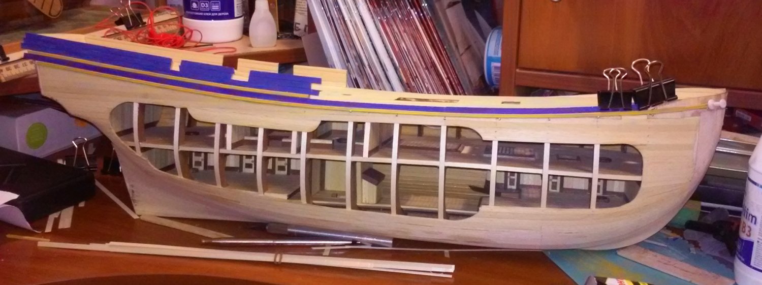 Oczywiście nie uniknąłem błędów i wyszło jak widać. Teraz schnie po malowaniu górnej części burty. Zrobi się drobne korekty i będzie git.