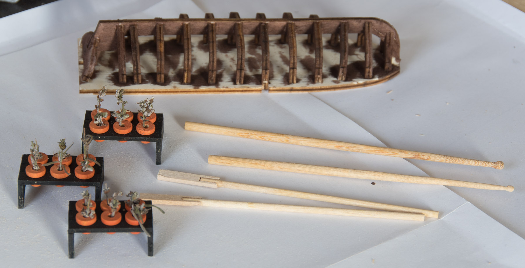 1. winda kotwiczna z zestawu jest z metalowych elementów, jakoś nie przekonała mnie i zrobiłem v.2.0. Miałem do dyspozycji tylko listewki sosnowe i stare jeszcze pilniki, otwory nawierciłem, a kwadraty wybijałem gwoździem. Wyszło lepiej, ale dalej jestem niezadowolony. Jak mi ktoś sprzeda trochę normalnego drewna to może zrobię sobie z czegoś lepszego.