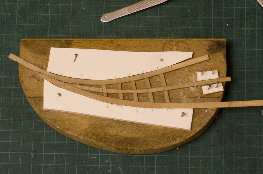 Niestety, wyginanie listewek w dwóch kierunkach i pasowanie ich "na oko" na modelu nie przyniosło dobrych efektów.