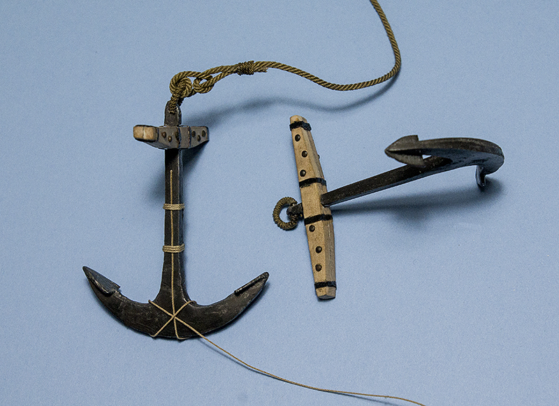 Drugi żagiel powieszony, przyszedł czas na kotwice. Zamierzałem wyciąć drewniane i pomalować jakimś gun metal Tamiji czy innej Pactry. Ale w międzyczasie rozmawiałem z koleżanką, napomknąłem, że czas na kotwice, a ona spytała: "będziesz odlewał?" ... No i tym pytaniem namówiła mnie do trochę trudniejszej zabawy. Pewnie drewniane byłyby bardziej idealnie gładkie, ale te są przynajmniej jak prawdziwe - metalowe