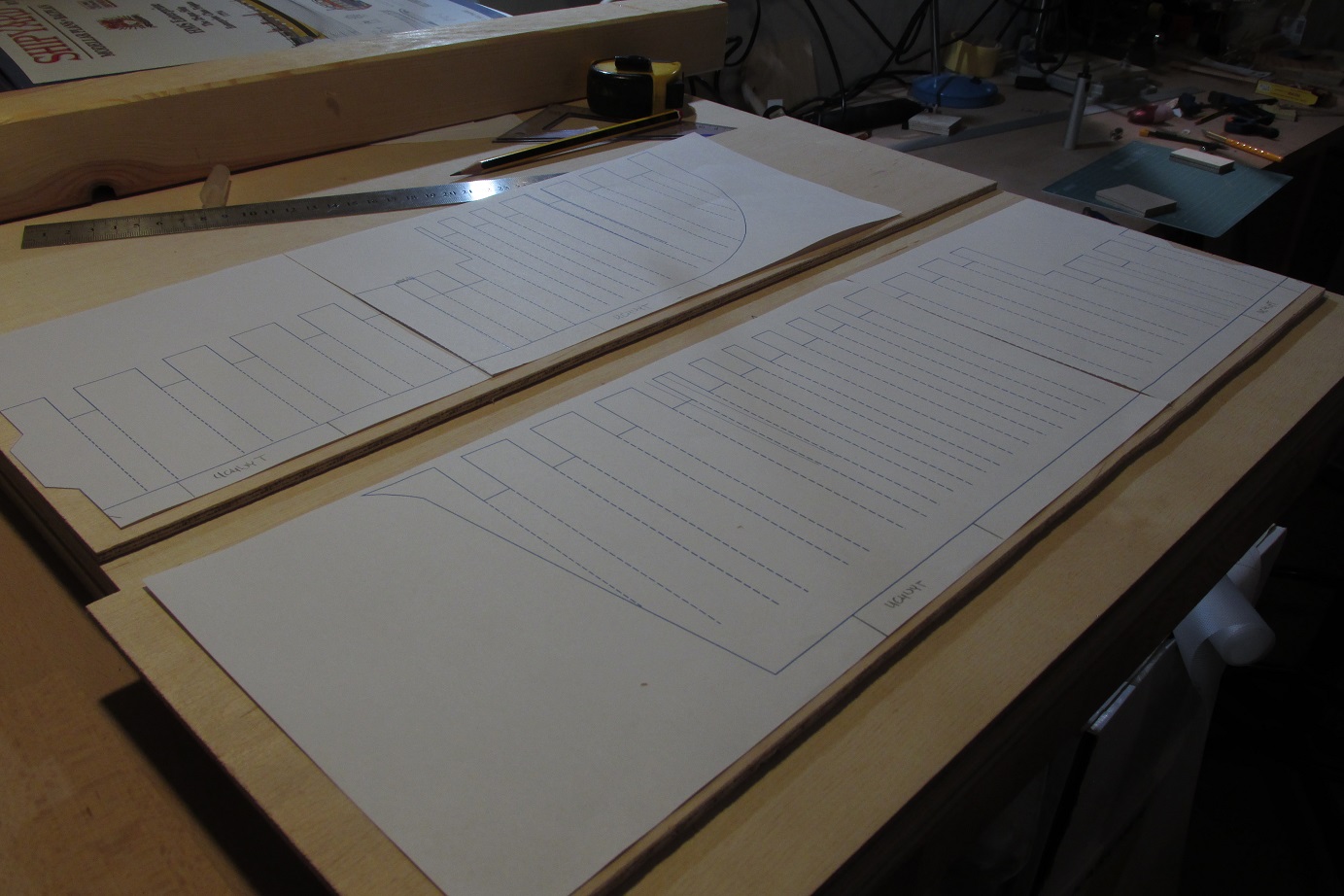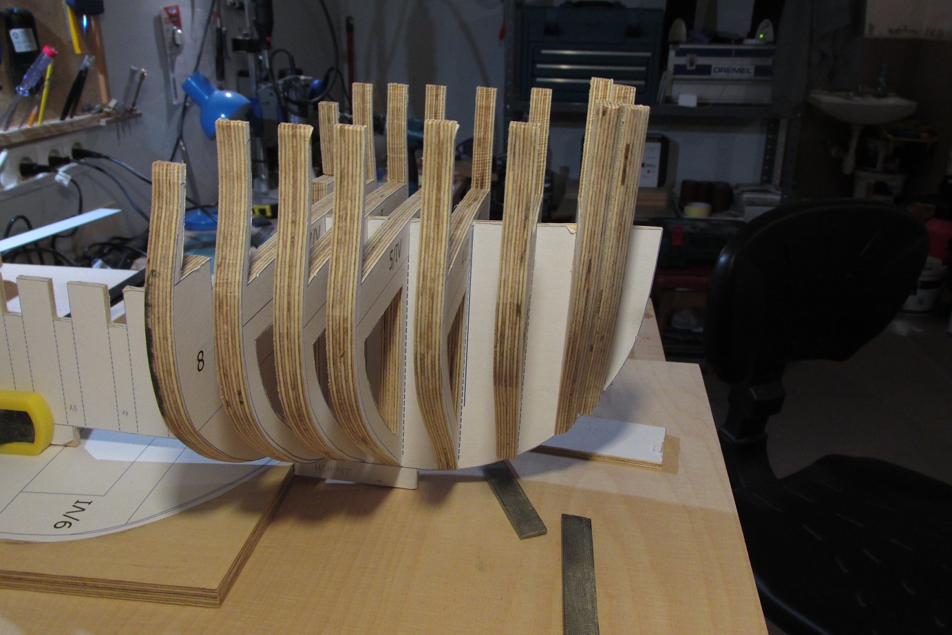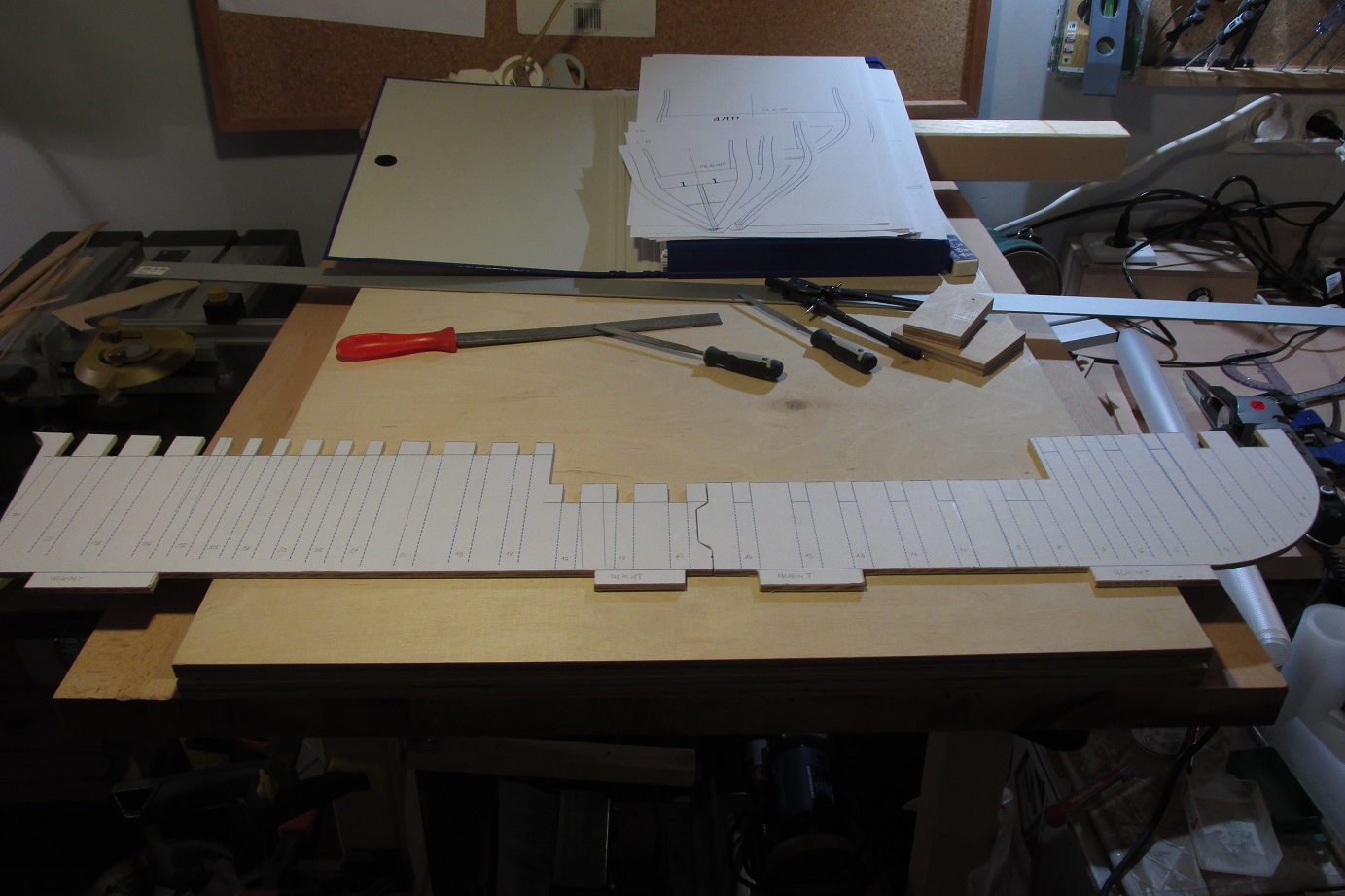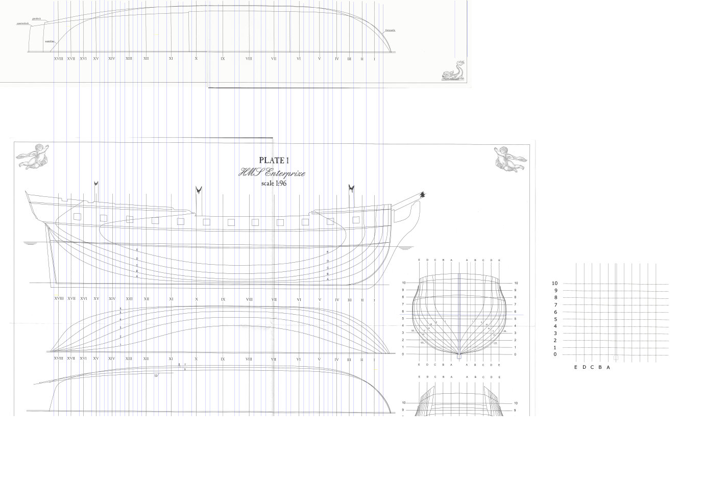 Można powiedzieć, że dziś rozpocząłem budowę HMS Enterprize. Nie wiem czy nie porywam się z motyką na Słońce, ale trzeba próbować. Mam w planach budować w skali 1:48 na grodziach. Ponieważ chcę spróbować poszycia jednowarstwowego, to dość mocno zagęszczam grodzie. Grodzie będą projektowane sposobem, który opisuje w swoim opracowaniu Gene Bodnar. Grodzie będą ze sklejki 10mm, podłużnica ze sklejki 4 mm. Na razie prace będą zlokalizowane na komputerze i pewnie chwilę potrwają