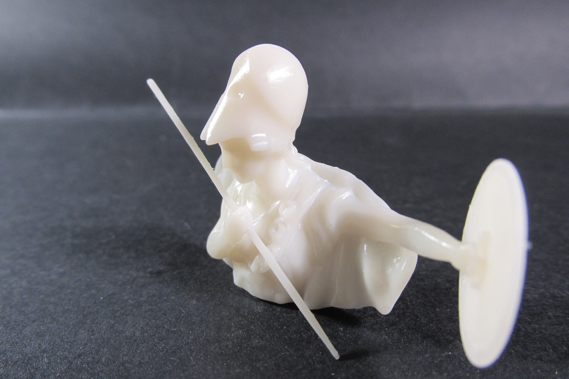 Ostatnimi czasy, w wolnych chwilach pracowałem nad rzeźbą Ateny na rufę. Ciągle zajmuje to sporo czasu, choć umiejętności obsługi programu są coraz lepsze. Zakończyłem dziś drukowanie. Druk jest zrobiony w żywicy wodno zmywalnej. Już nigdy nie użyję innej. Pierwszy wydruk wyszedł zbyt duży, proporcje do cherubinów i samej rufy były niewłaściwe. Musiałem więc pomniejszyć i ponowić drukowanie. Teraz siedzę nad rzeźbami cherubinów okalających rzeźbę Ateny. Po skończeniu będzie wydruk, malowanie całości i montaż na modelu.