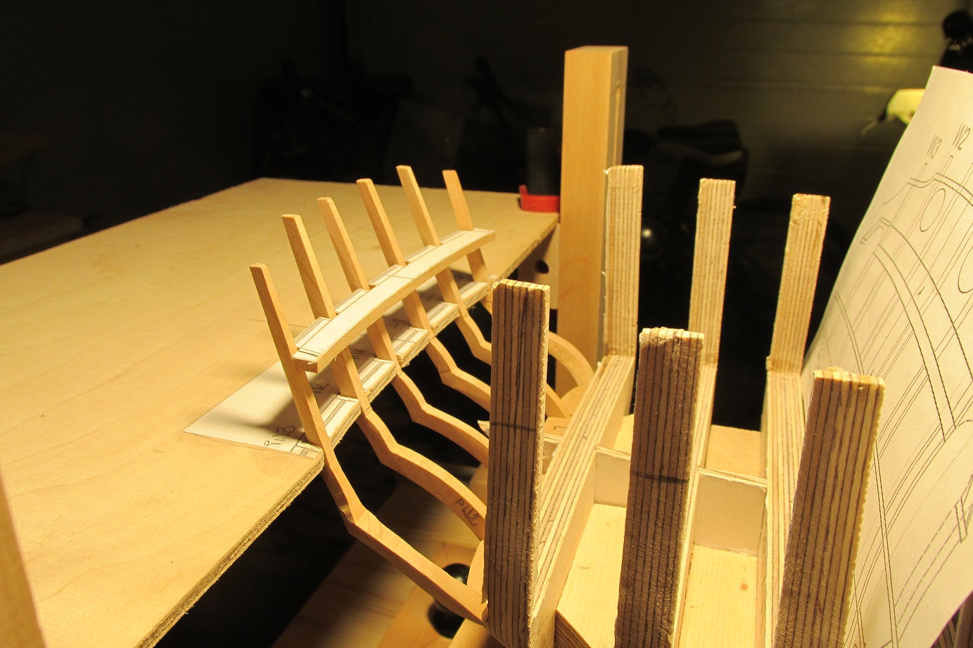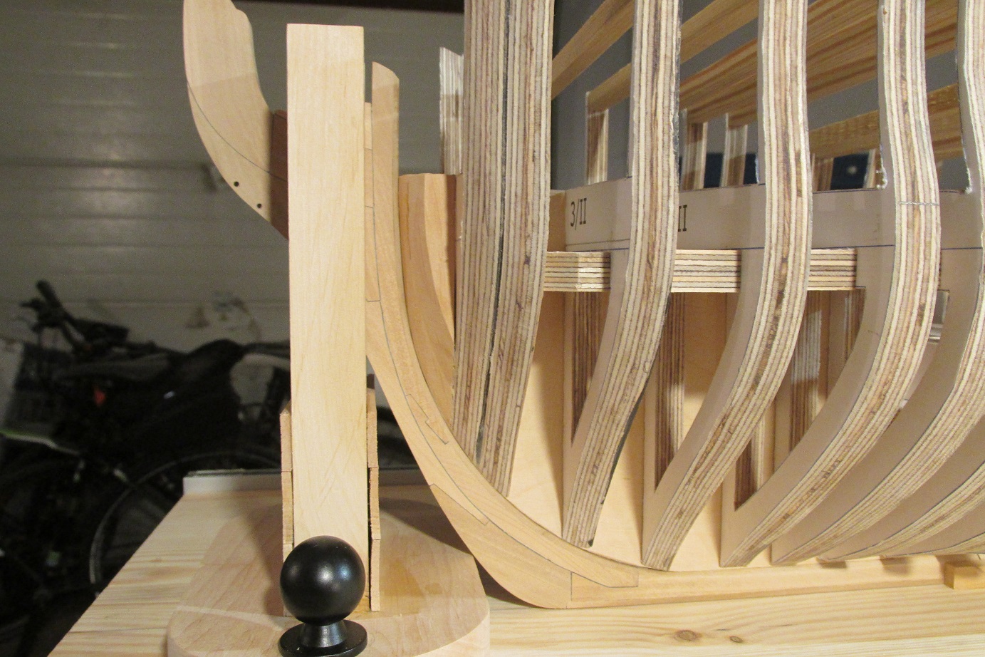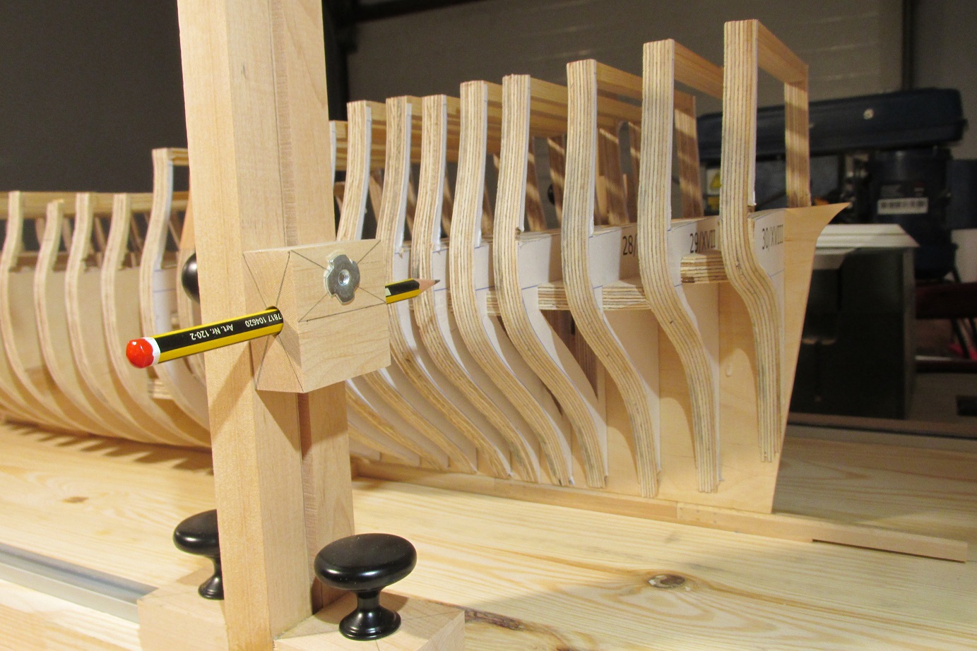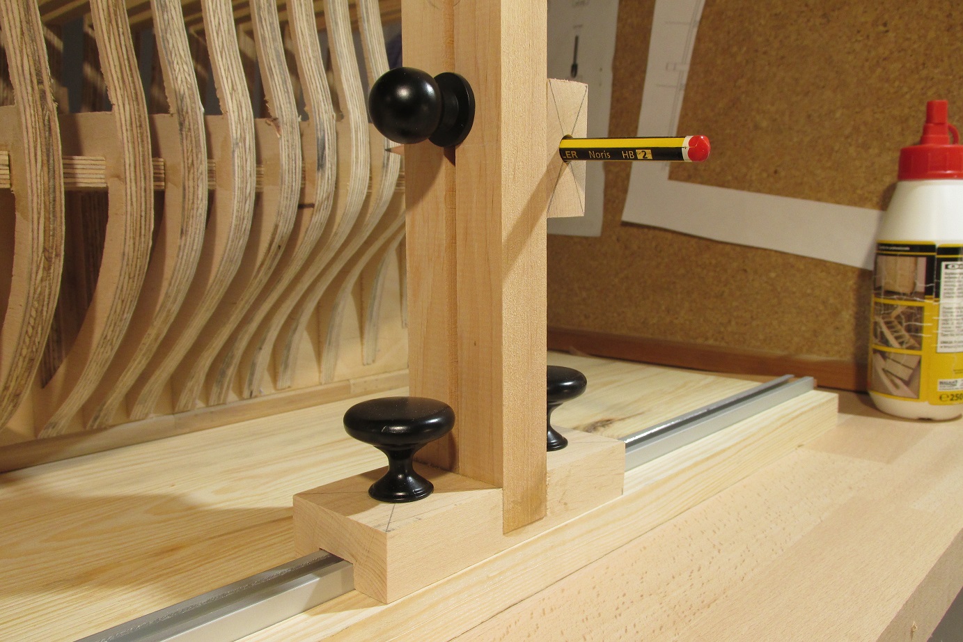 Ponieważ szkielet już prawie gotowy i trzeba będzie coś na nim przykleić, to zrobiłem sobie przyrząd do trasowania. Teraz będę zabierał się za stewę rufową, następnie będzie konstrukcja pod bukszpryt no i konstrukcja rufy.
