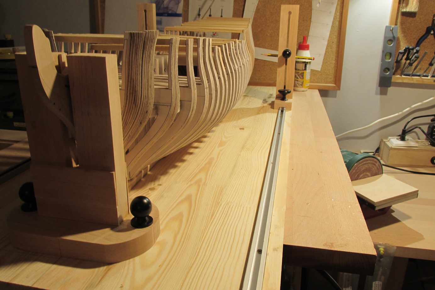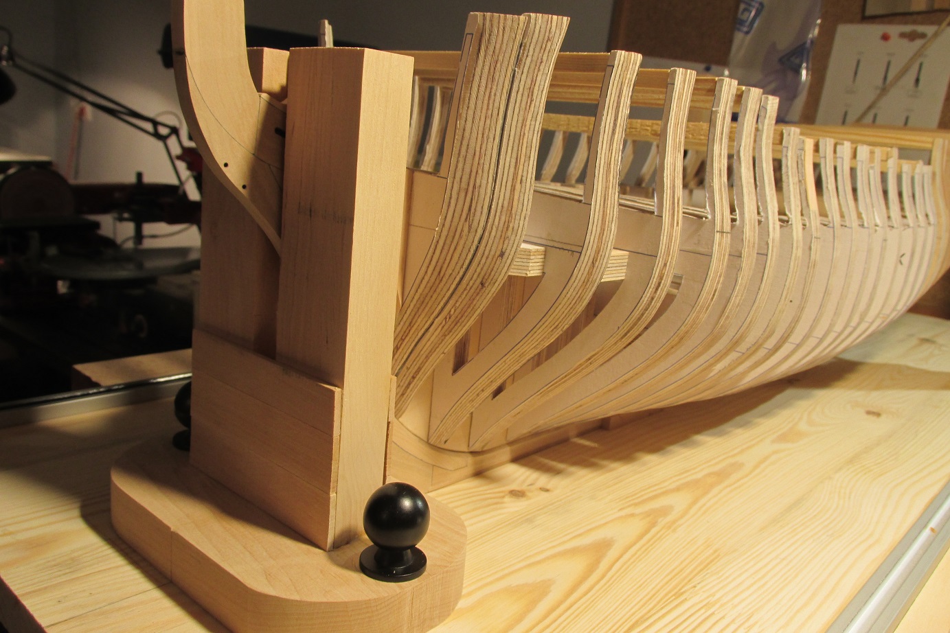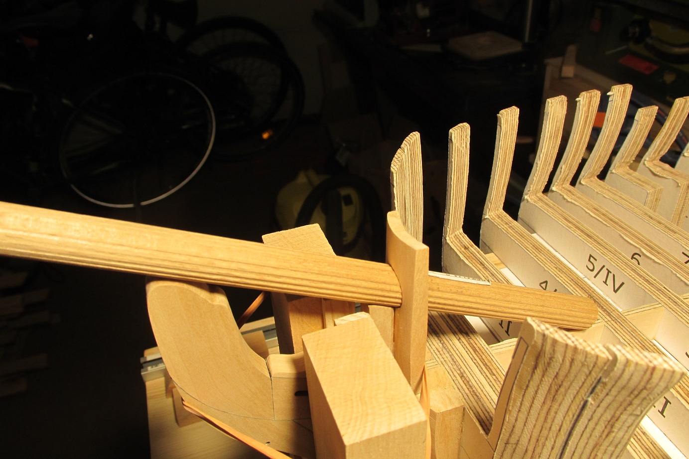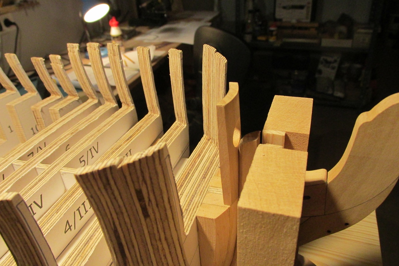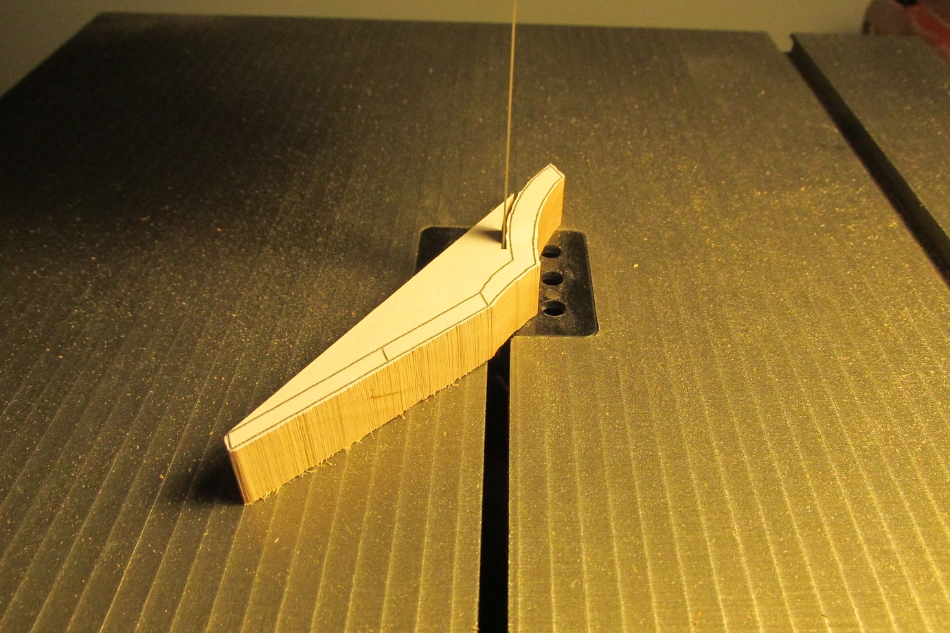 Ponieważ szkielet już prawie gotowy i trzeba będzie coś na nim przykleić, to zrobiłem sobie przyrząd do trasowania. Teraz będę zabierał się za stewę rufową, następnie będzie konstrukcja pod bukszpryt no i konstrukcja rufy.