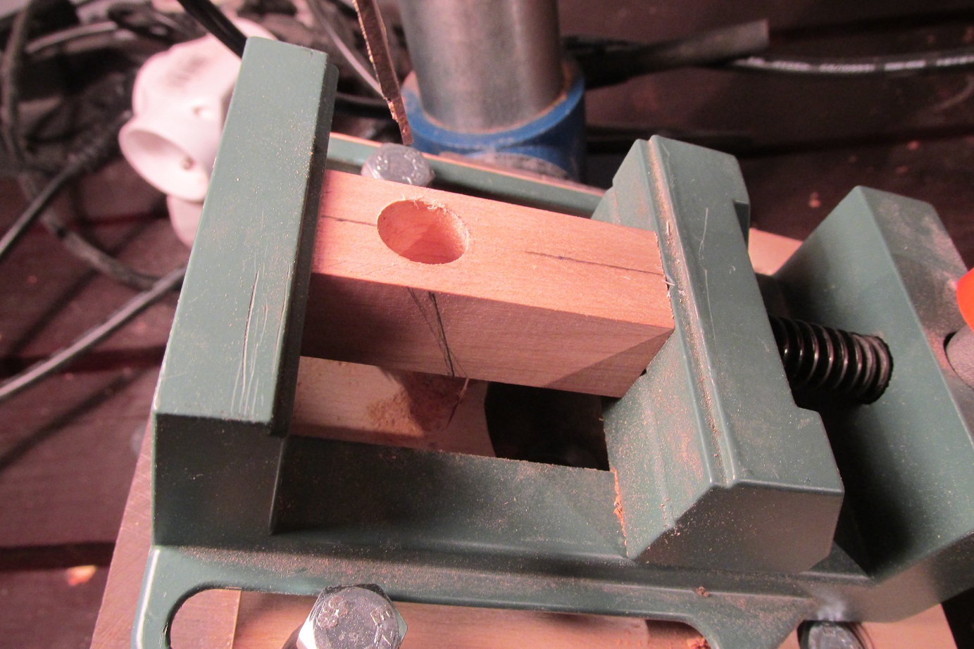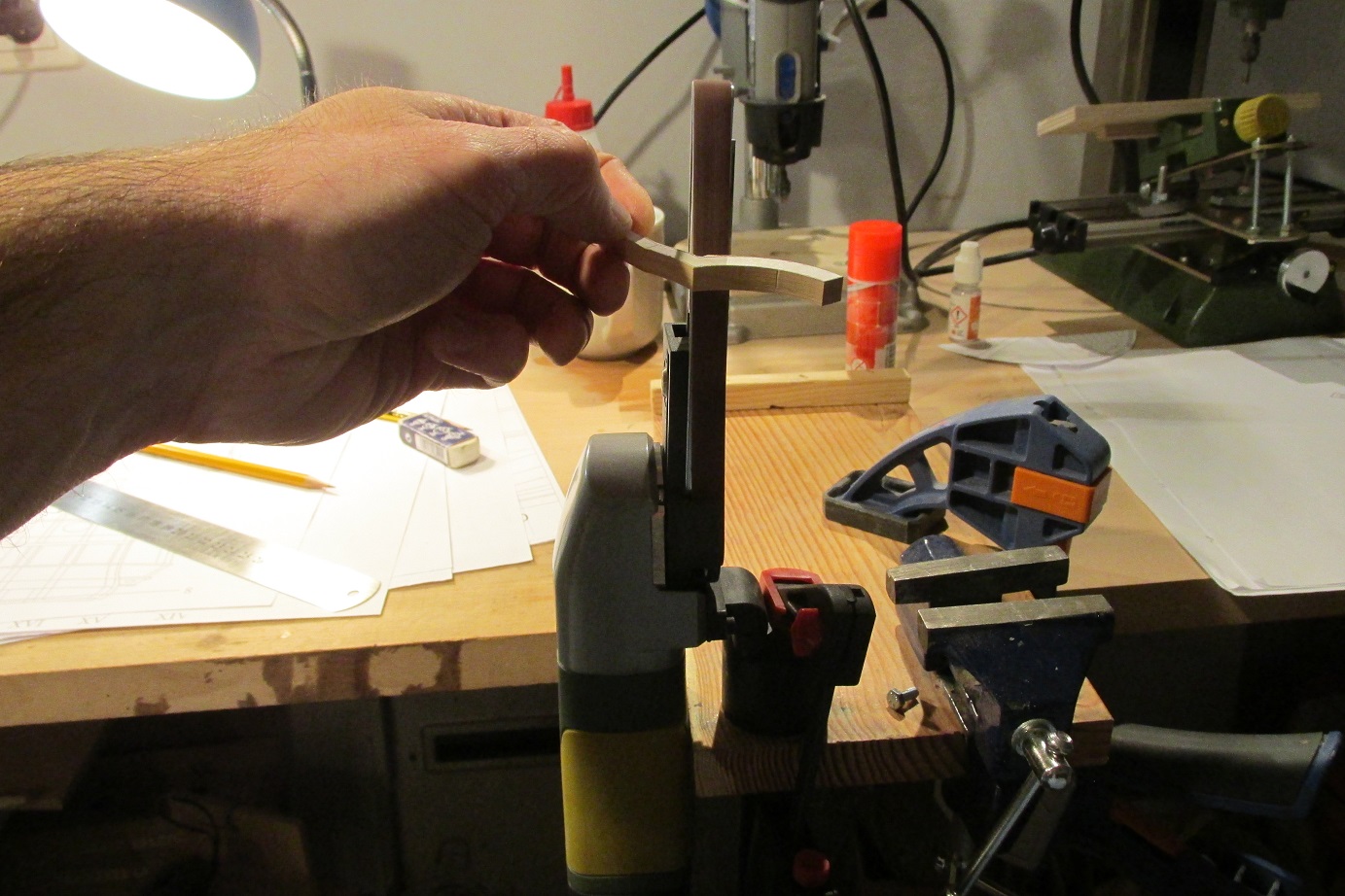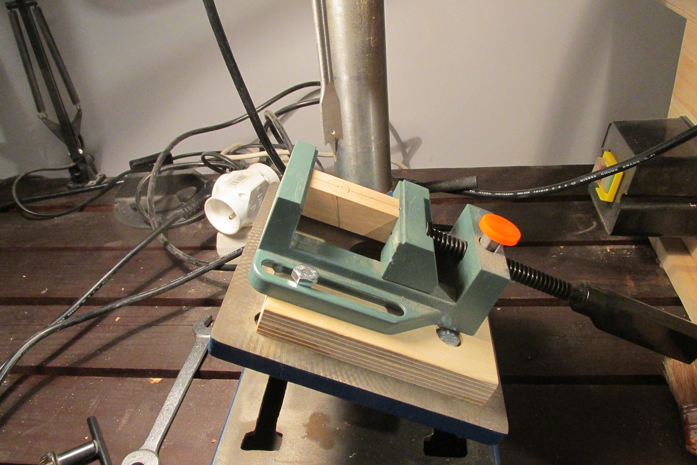 Ten frez, który widać przy frezowaniu zaciosów ma średnicę 6mm a średnica trzpienia to 3mm. Pochodzi z zestawu sześciu frezów, który kupiłem w OBI. Mam również frez wpustowy Dremela o średnicy 8mm, ten o ile dobrze pamiętam kupiłem Liroy Merlin. Największy wybór frezów do mikro narzędzi jest w OBI no i oczywiście w necie. A jeśli chodzi o większe frezy z wąskim trzpieniem, to sam poszukiwałem, ale bez skutku. Jakbym miał tokarkę do metalu to bym kupił wiertła płaskie do drewna, podtoczył trzpień i ukształtował łopatkę według potrzeb,ale tokarki nie mam:-) a Proxxon PD250e kosztuje 5500 PLN, więc na razie pozostaje w sferze marzeń, ale kto wie... :-)