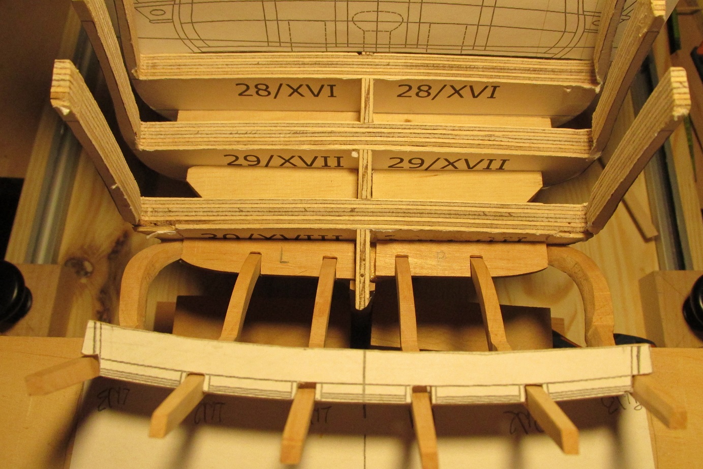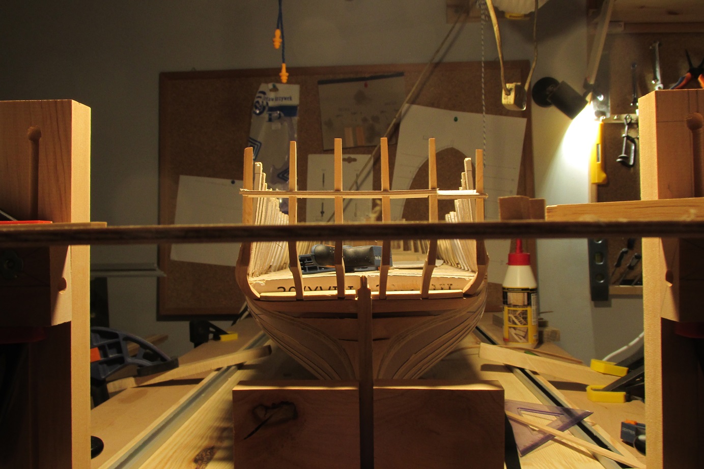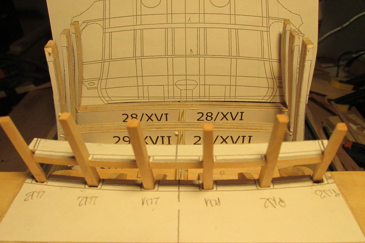 Plan pokazuje tą krzywiznę w skrócie perspektywicznym, bo te elementy rufy są na planie pokazane pod kątem - gdy poprzenosisz bezpośrednio na drewno rysunek z planu, okaże sie, ze ksztalt owych elementow bedzie zbyt krotki, skrócony perspektywicznie na papierze.