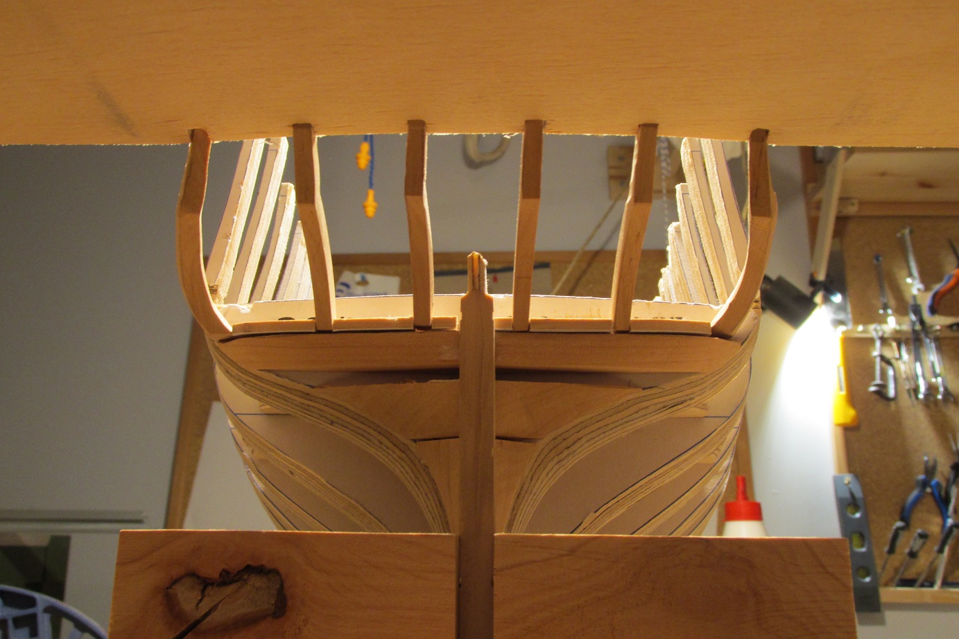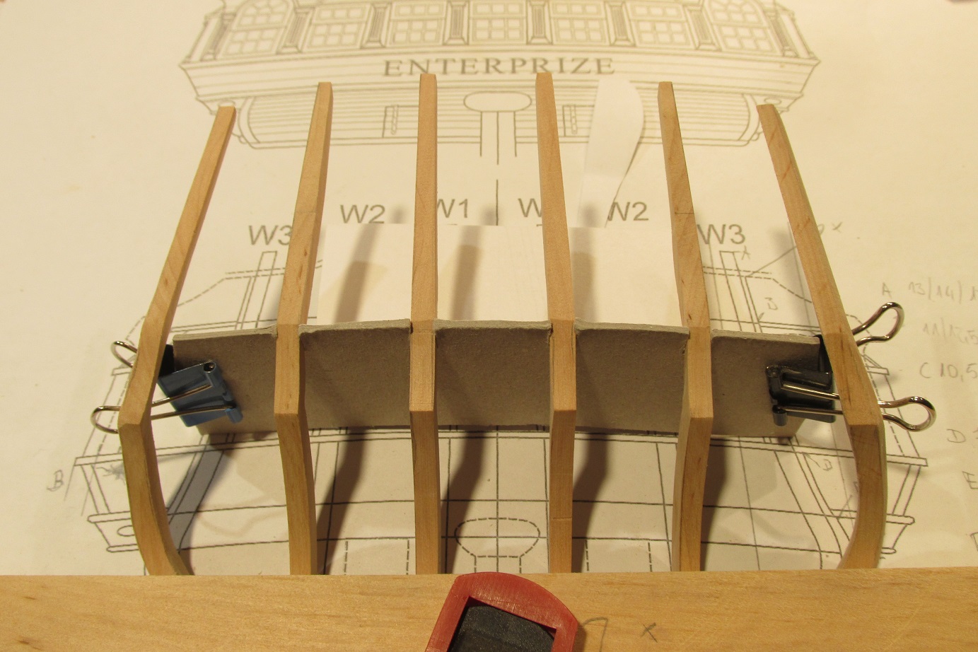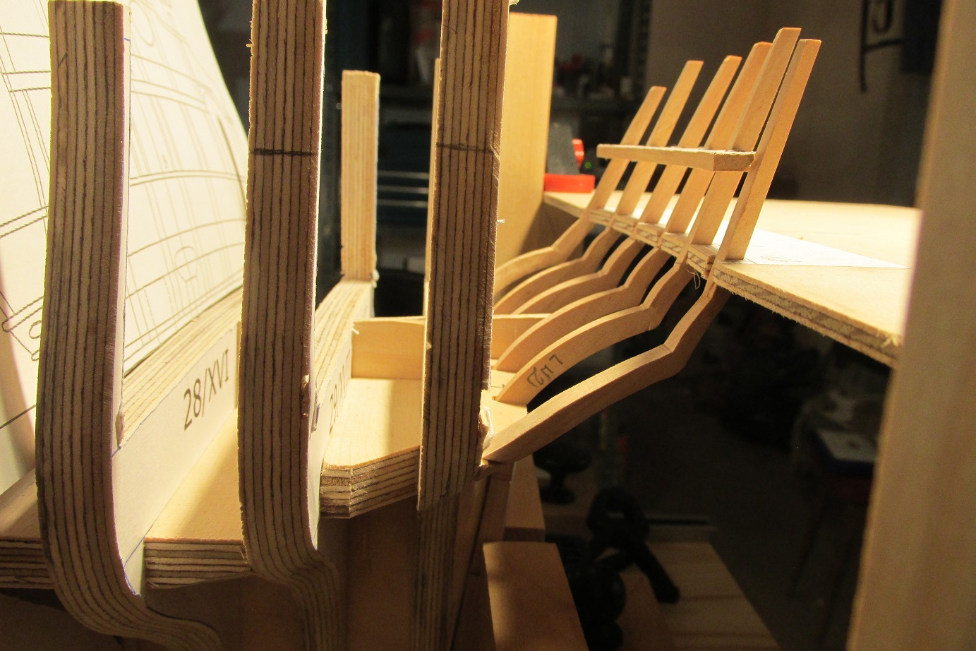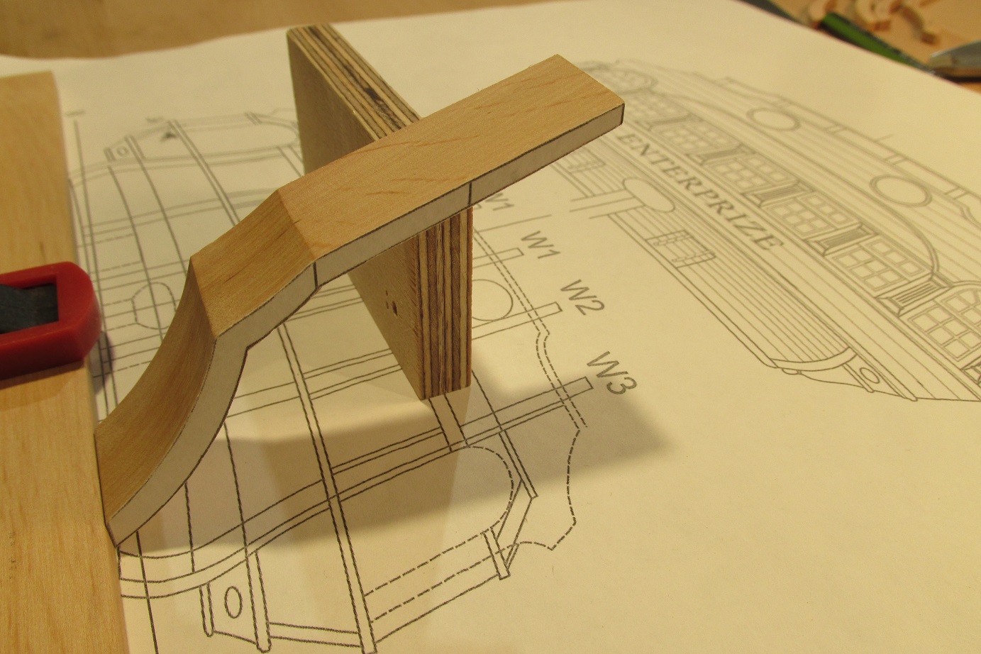 Plan pokazuje tą krzywiznę w skrócie perspektywicznym, bo te elementy rufy są na planie pokazane pod kątem - gdy poprzenosisz bezpośrednio na drewno rysunek z planu, okaże sie, ze ksztalt owych elementow bedzie zbyt krotki, skrócony perspektywicznie na papierze.
