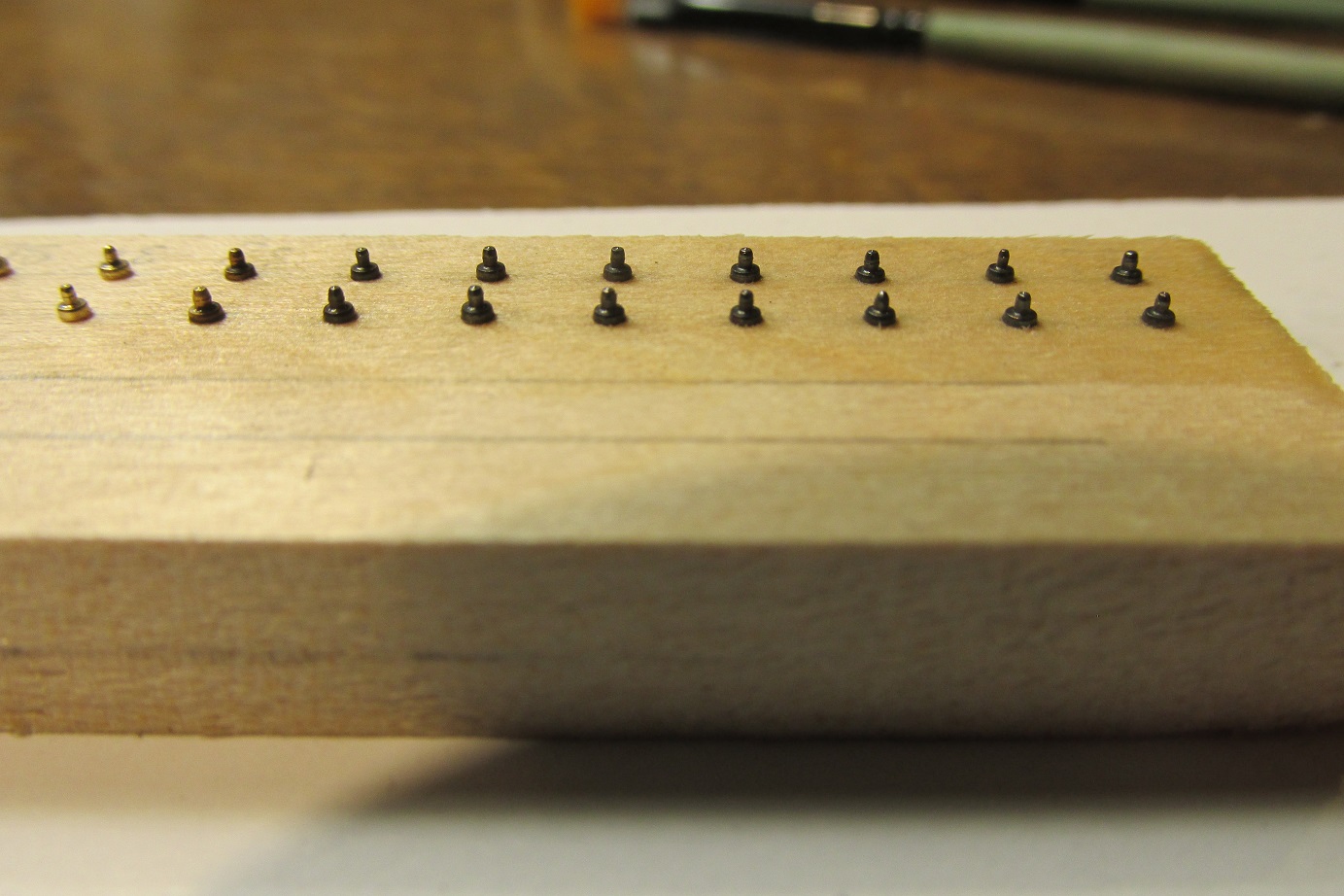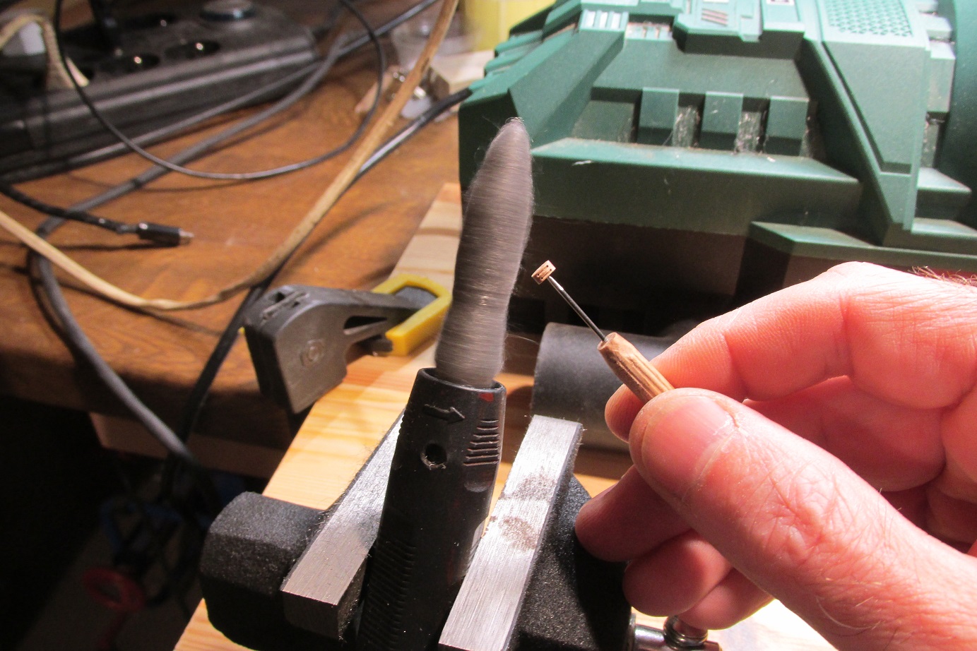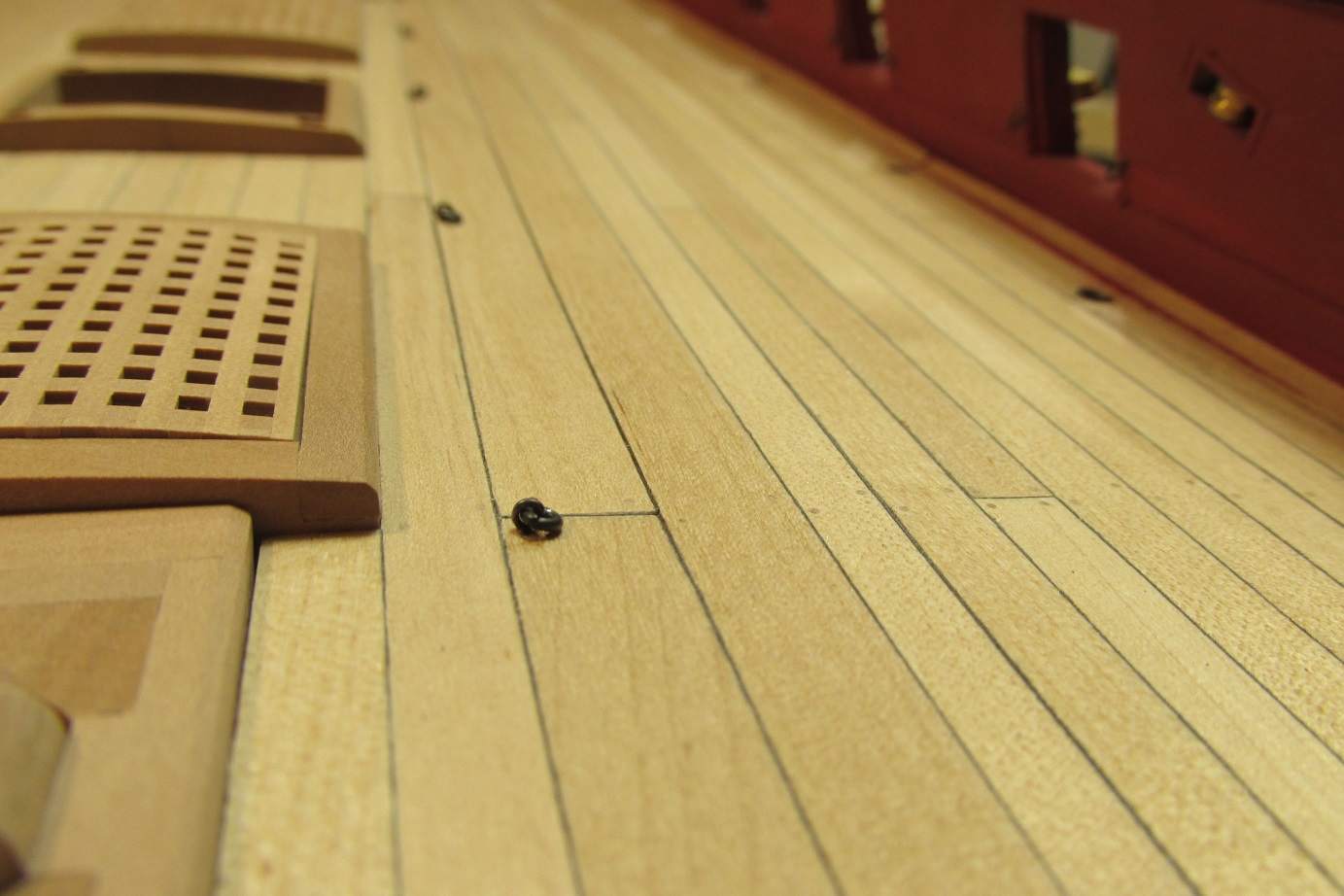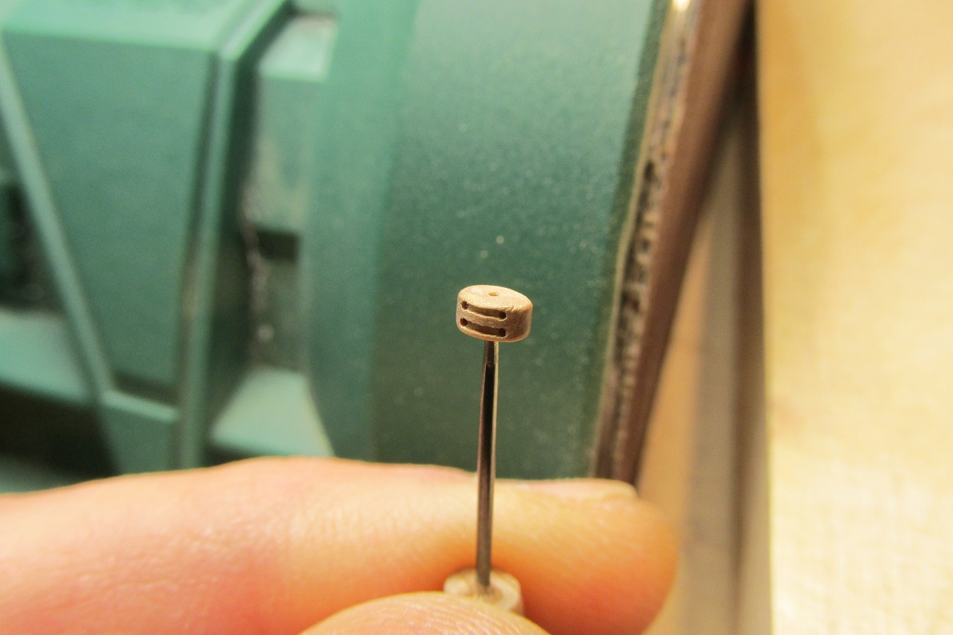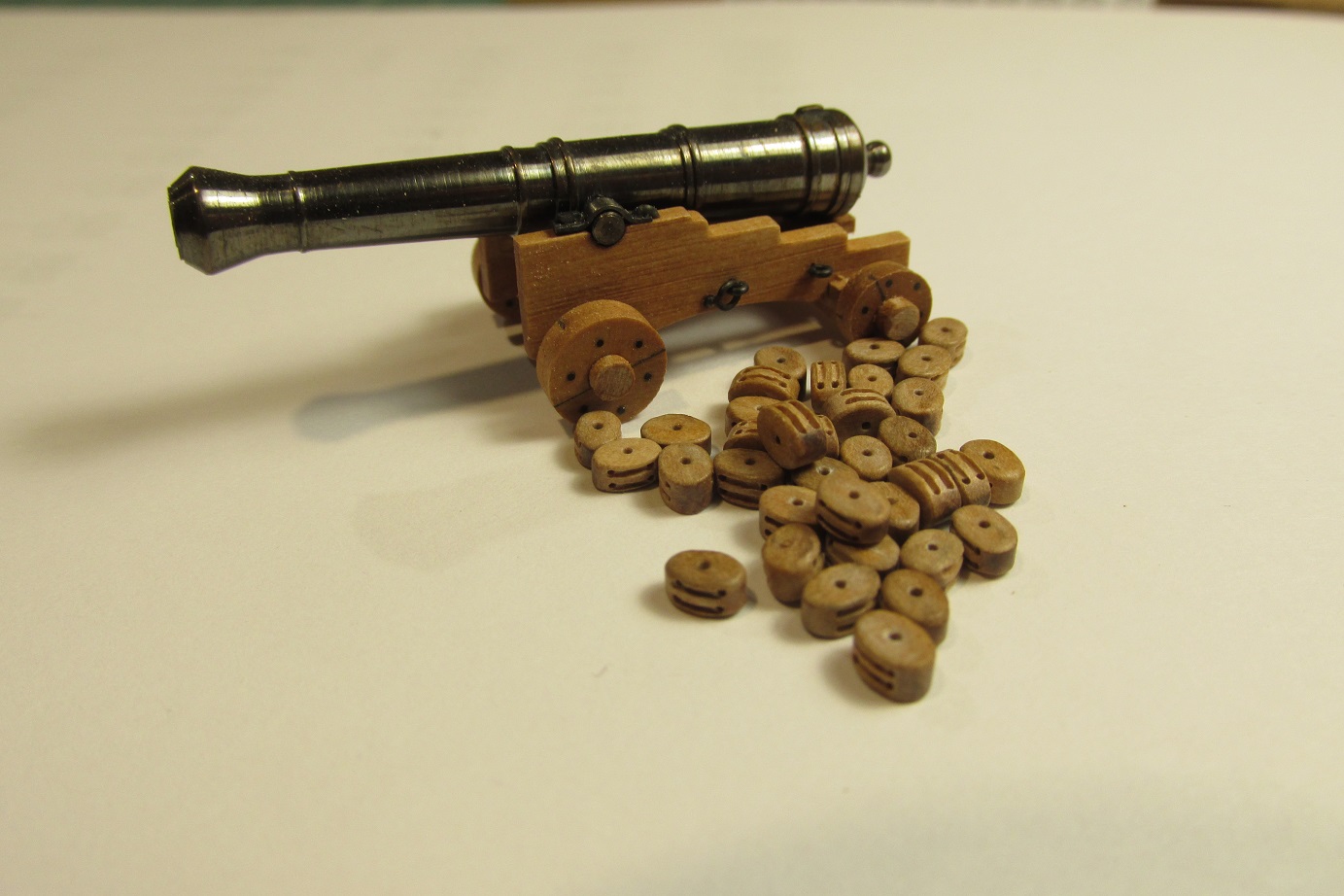 Zmieniłem również koncepcje zawiasów furt. Początkowo, jak widać na wcześniejszych zdjęciach, chciałem zrobić je płaskie, takie podpatrzyłem na Victory. Ale jak się porozglądałem w innych relacjach i literaturze, to okazuje się że chyba powinny być to zawiasy w kształcie walca z bolcem. Takie też wytoczyłem i będę montował.