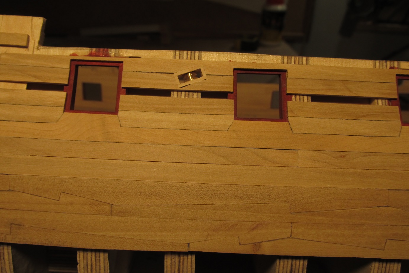 Lepiej jeszcze by bylo, gdybys te odplywniki robil z aluminium a nie z mosiadzu. Aluminium lepiej by imitowalo olow, z ktorego robiono te detale (scuppers).