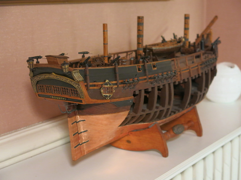 Długo się zastanawiałem ale skoro skończyłem od A do Z to wrzucę parę fotek. Sorry za jakość co niektórych zdjęć. Innych już nie będzie . Model popłynął w siną dal. Z zestawem w końcu to już miało niewiele wspólnego. Ot taka hybryda. Poprawione pokłady dołożone pomieszczenia . Druga ściana od strony pełnej . Boazerie. Szafka za kołem sterowym. Itd itd. Wystarczy porównać zdjęcia zestawowego i po moim update . Bazowałem na opracowaniu Bounty Anatomy oczywiście w niektórych przypadkach szukając złotego środka.
