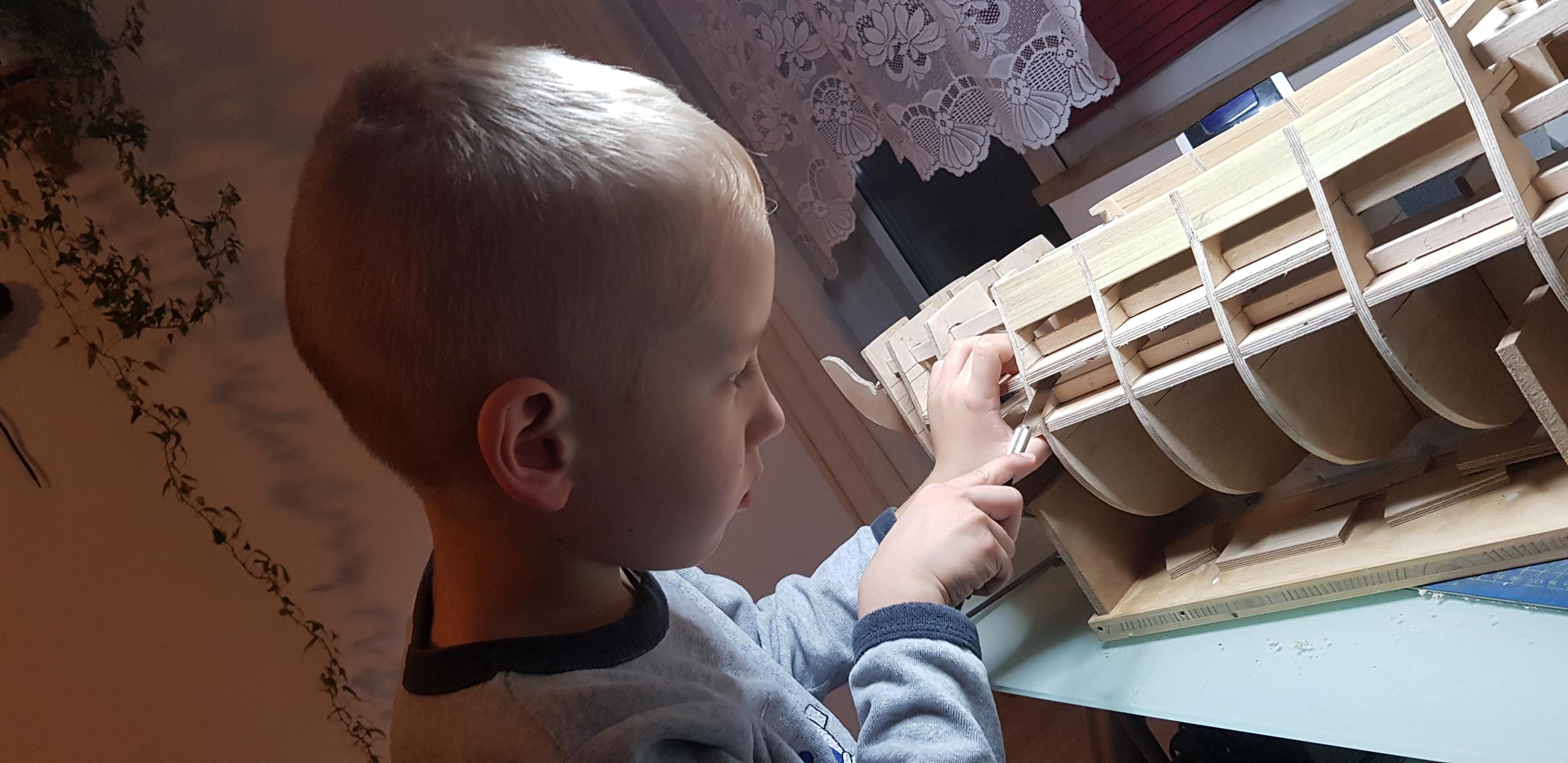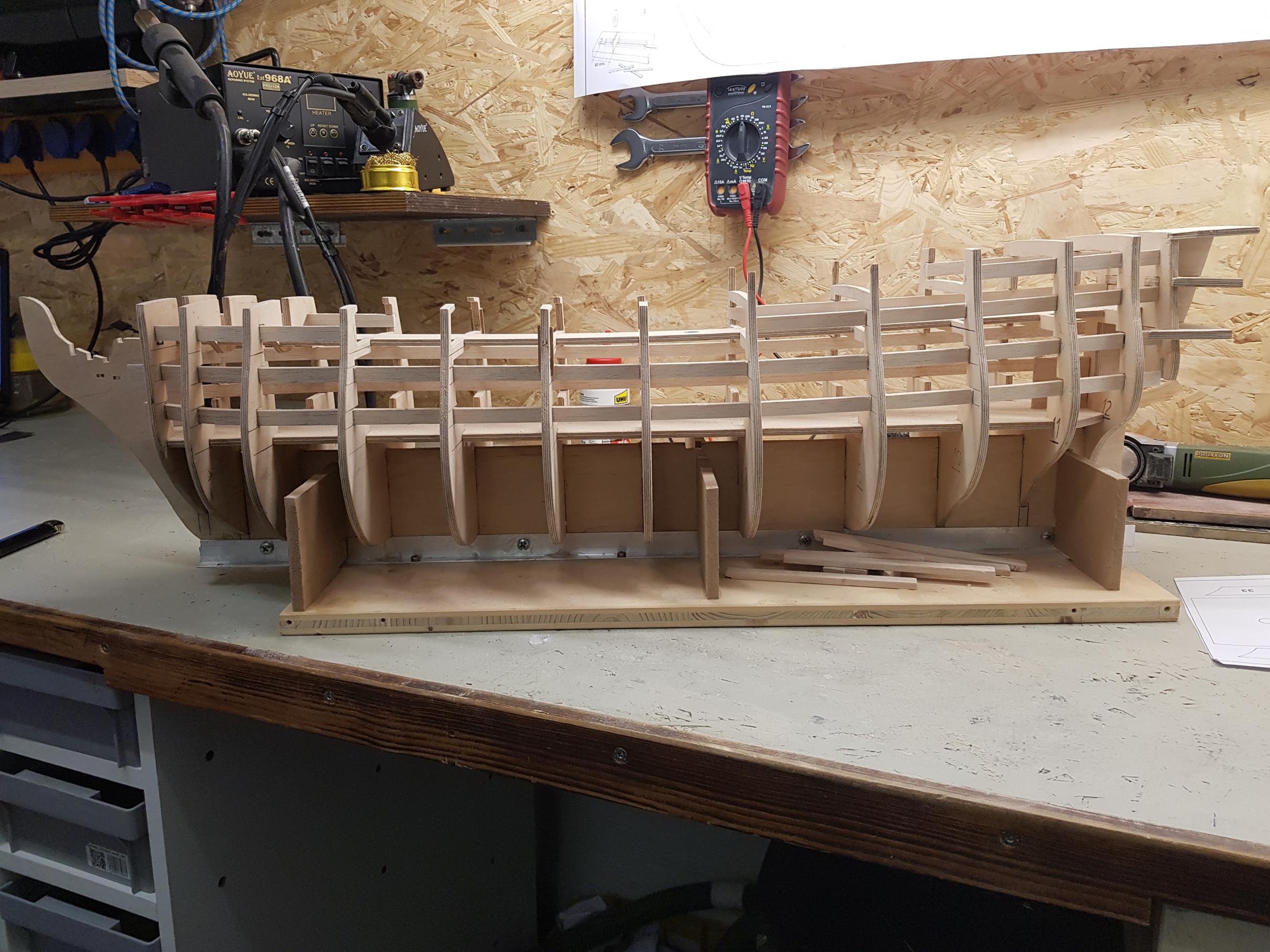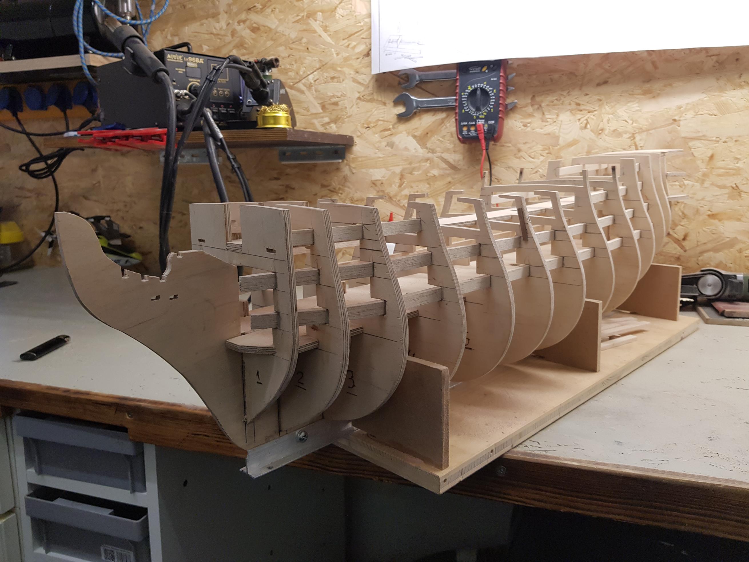 Co by nie było pierwsze poczynania ze szkieletem który został wycięty ze sklejki 10mm i sklejony w pseudo stoczni .
