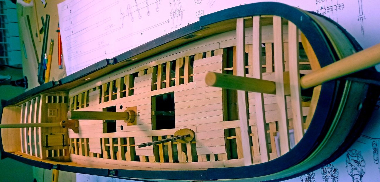 Trochę drobnicy przybyło; kabestan, ster wraz z rumplem i para przymasztowych kołkownic: