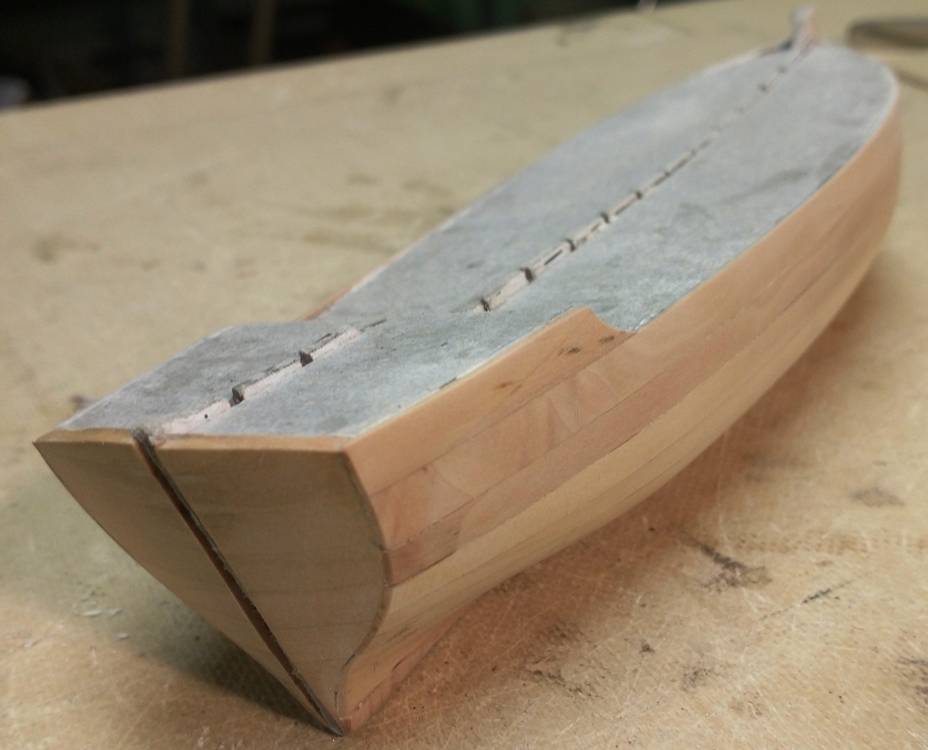 Oczyściłem wnętrze skorup z resztek kartonu i kleju i wykonałem stępkę.