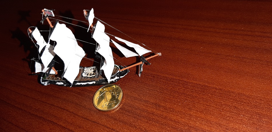 Na początku byłem sceptycznie podchodziłem do mikro modeli, a szczególnie żaglowców w 1/1200, wręcz plułem jadem, ale jakimś dziwnym zbiegiem okoliczności wpadłem w posiadanie owego "zestawu". Jest to żywiczny odlew, jak na tą skale to jest nawet nawet, pręty z których są maszty wyjątkowo fajnie reagują na CA, "linki" w właściwie nitki wiodącej do much jest aż nadto... Ja to traktuje bardziej jako ciekawostkę i wstęp do późniejszych dioram związanych z morzem. Te modele można będzie też wykorzystać do gry strategicznej o żaglowcach, np zmierzch żagla. Ale jako model-tudzież ozdoba też się sprawdzi.