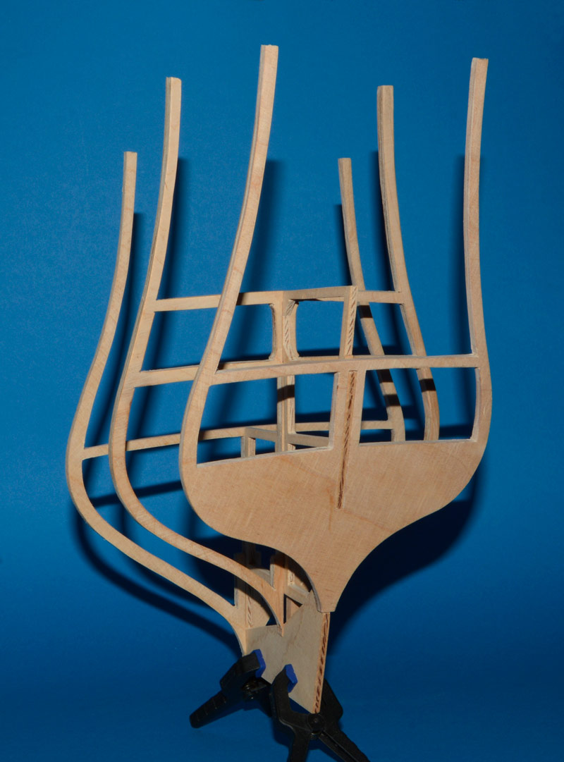 Papierowe owrężenie usunąłem, zastępując je wręgami ze sklejki - faktycznie mogło dojść do przekoszenia, ale chyba się udało. Poszczególne etapy będą w relacji.