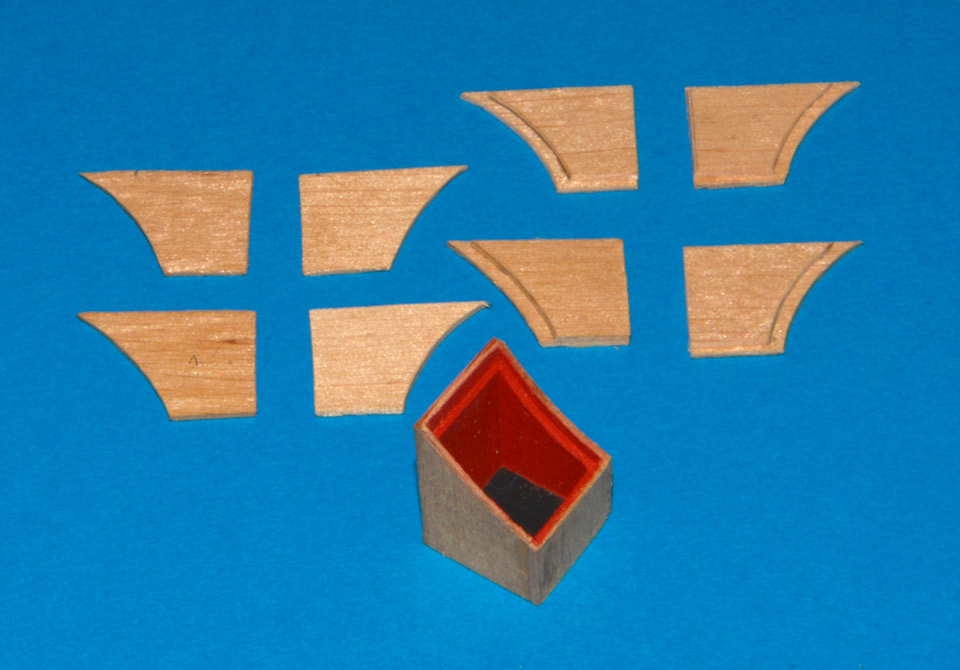 Mysle, ze zadales sobie zbedny klopot z tym pierwszym, papierowym (kartonowym) modelem, ktory teraz probujesz pokrywac drewnem. Podwojna robota!