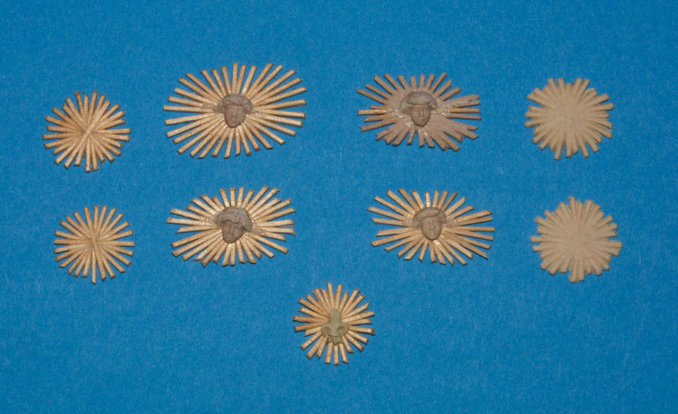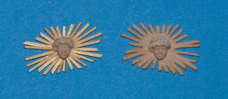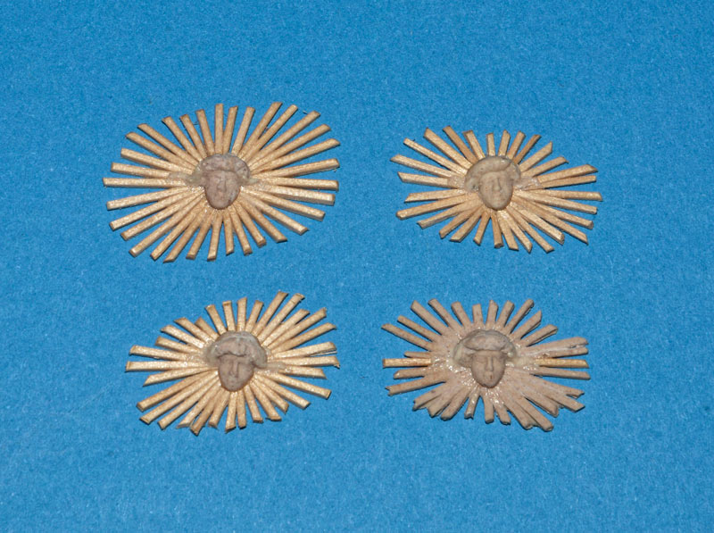 Pierwsze próby ozdób hełmu galerii bocznych - symbol Króla Słońce (jeszcze bez bocznych "kędziorków").