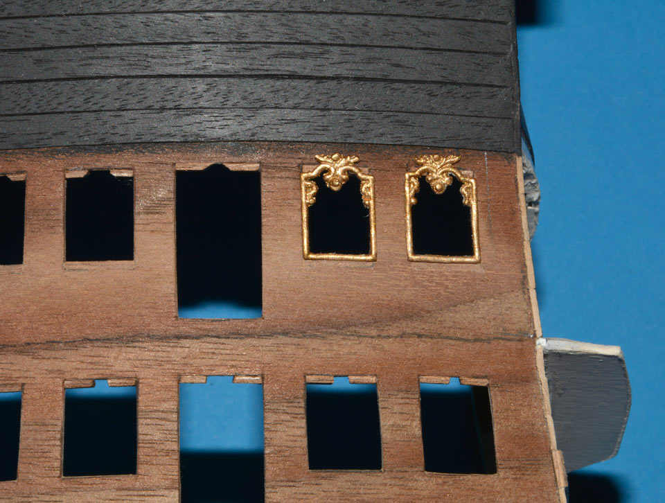 Na tym etapie mam przygotowane dwa komplety (do obu pawęży) ozdób okienno-drzwiowych górnego balkonu (kajuty kapitańskiej).