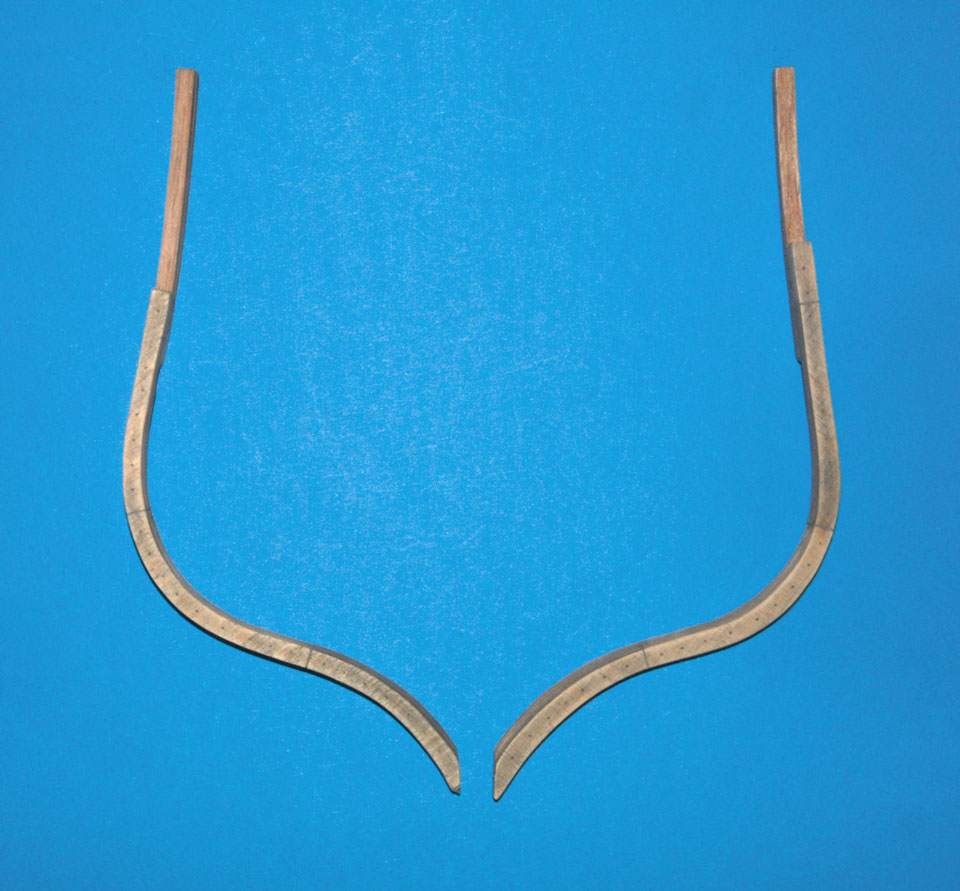 Wkleiłem przygotowane elementy wręg na styku z pawężą.