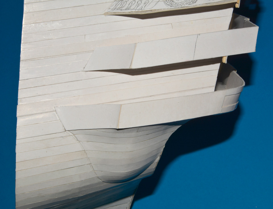 Po uzyskaniu wręgi i wyznaczeniu pokładów, ten modelik miał jedynie służyć do testów, a po wykonaniu modelu docelowego (drewnianego) miał wylądować w śmietniku. Jednak sytuacja wymusiła niejako dalszą "zabawę" z papierzakiem, włącznie z drugim bardziej poprawnym poszyciem na bakburcie uwzględniając to o czym pisałeś.