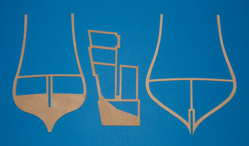 Uwazaj tez na proces poszywania. Najpierw poszyj drewnem ta plaska trojkatna rufe i dopiero potem kladz listewki burtowe tak, by ich koncami przykryly zewnetrzna krawedz poszycia rufy, a nie odwrotnie!