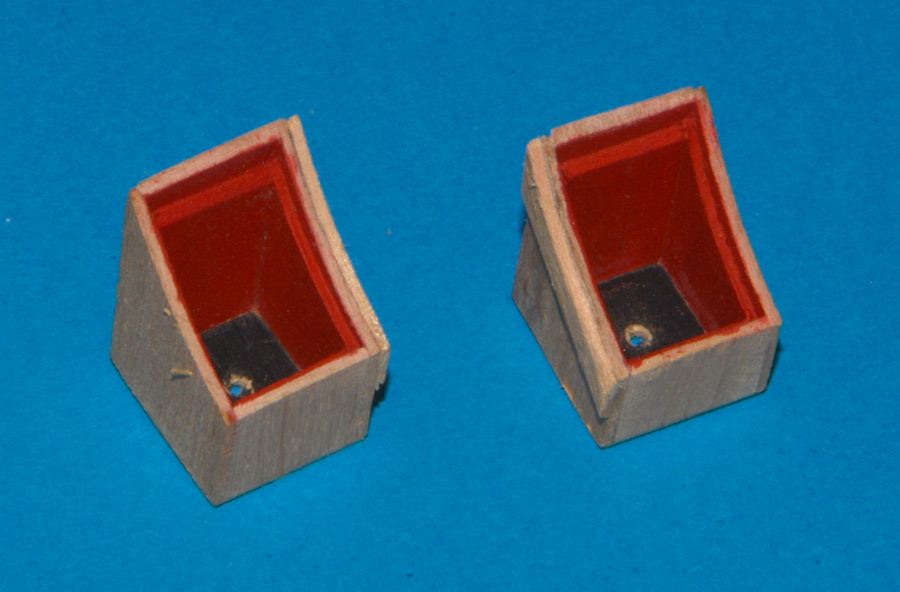 Jednak na tym etapie postanowiłem nieco "uszlachetnić" model obłogiem i fornirem, dodając skrzynki imitacji ambrazur. Skrzynka z zaślepką, w której będzie można osadzić imitację lufy.