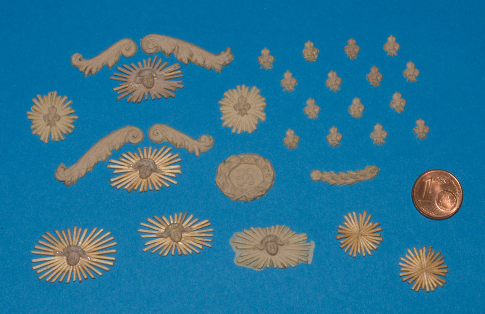 Pierwsze próby ozdób hełmu galerii bocznych - symbol Króla Słońce (jeszcze bez bocznych "kędziorków").