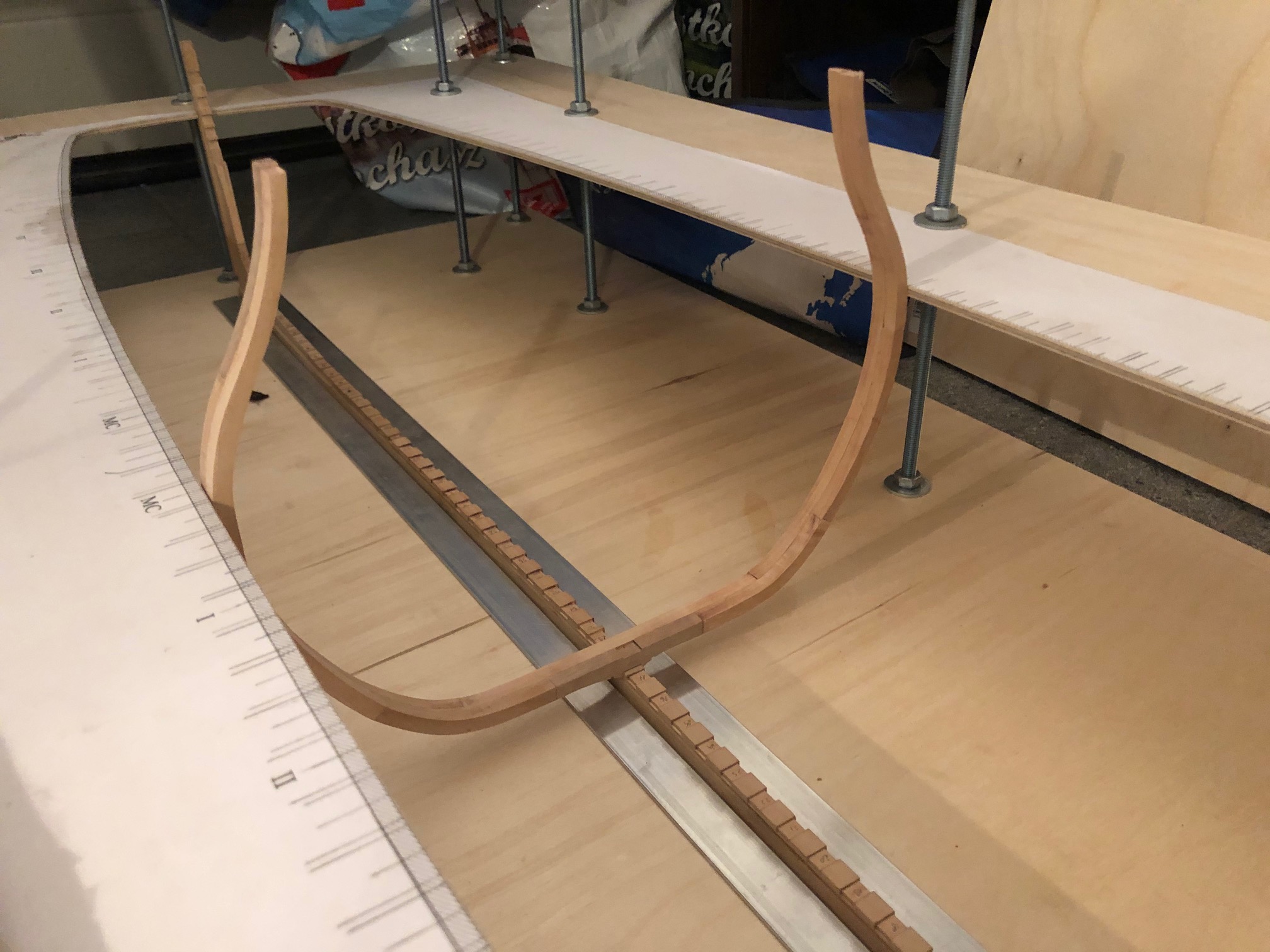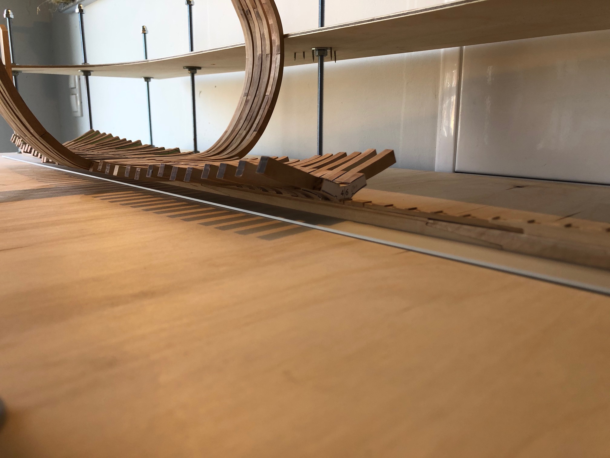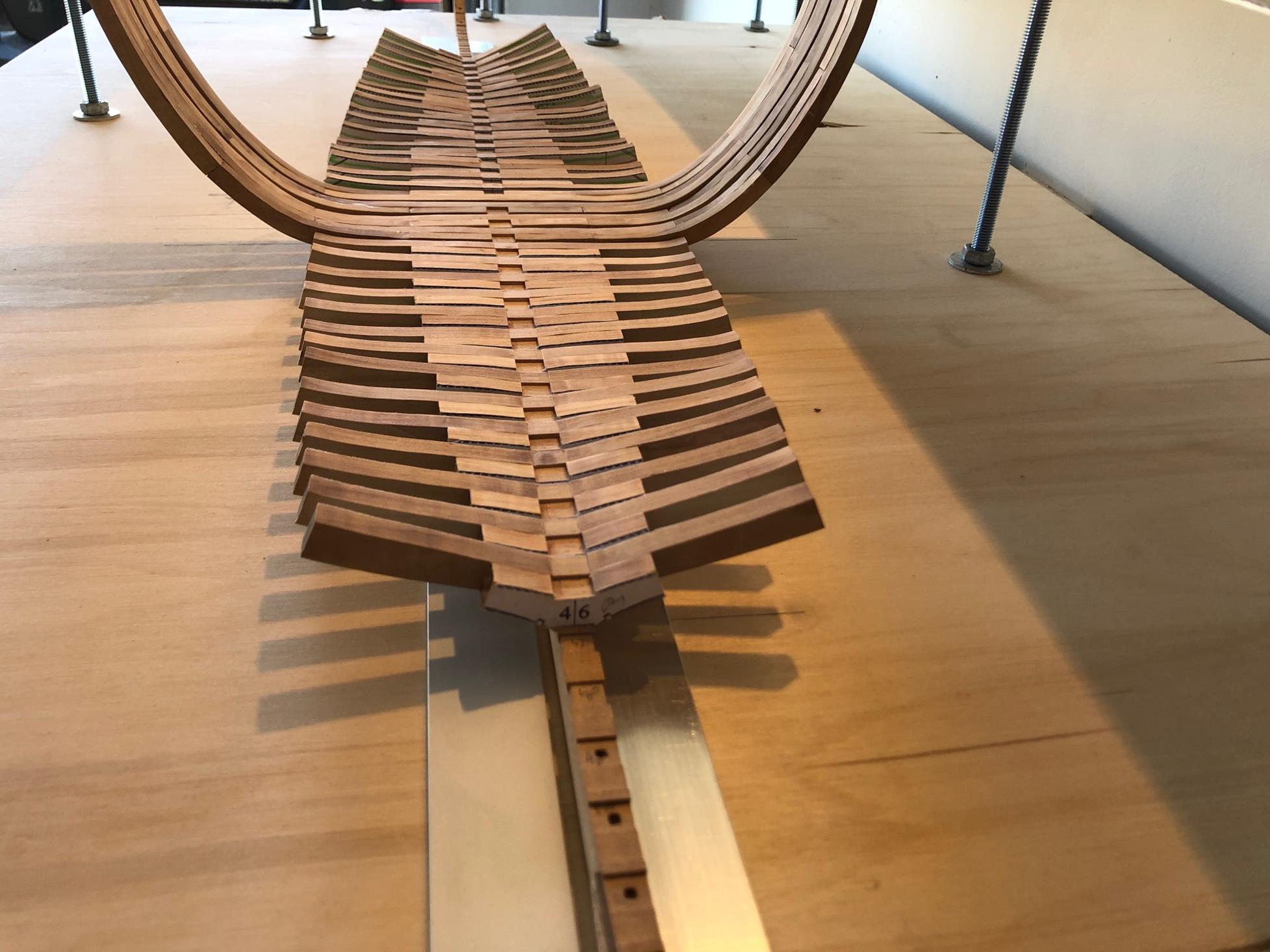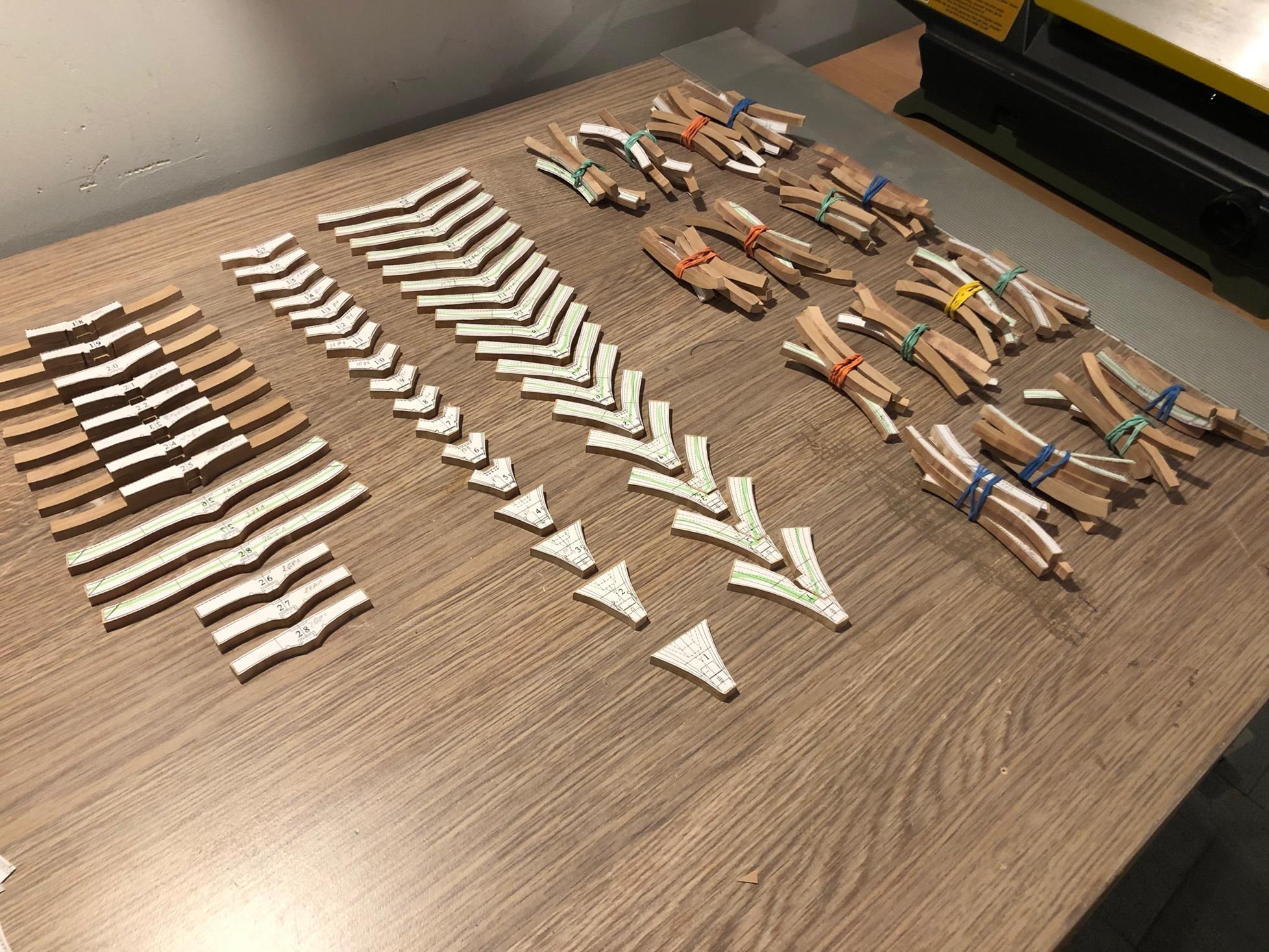 Pomału kleję wręgi. Sprawiłem sobie heblarkę, co znacznie sprawę przyśpiesza.