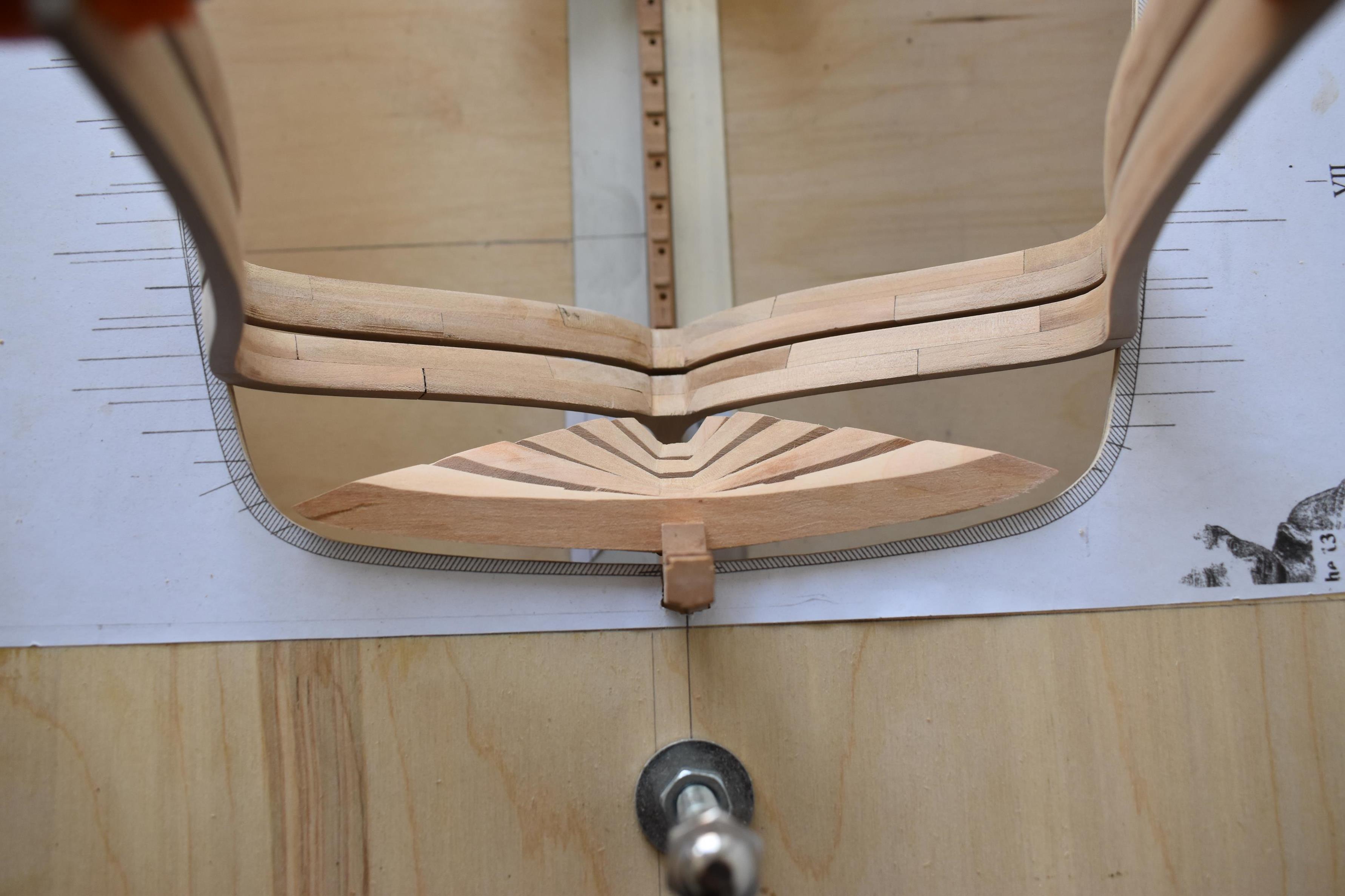 Uwazaj przy fabrykacji wreg dziobowych, tzw. hawse frames (hawse pieces), ustawionych pod zmieniajacymi sie katami do kilu. Jesli nie masz w swych planach wyrysowanych ich indywidualnych profili (przedni i tylny), trzeba Ci bedzie sobie wyrysowac je wlasnorecznie - latwo wtedy sie kropnac i zrobic blad.