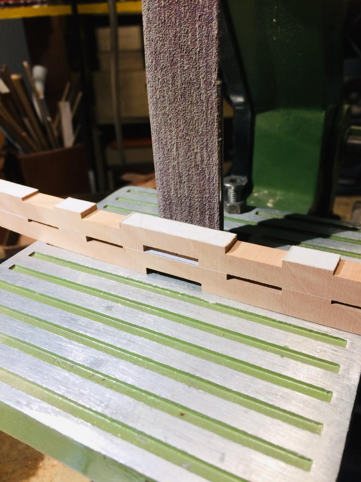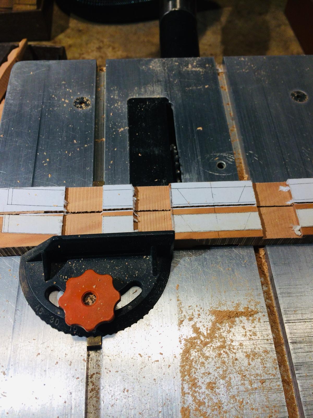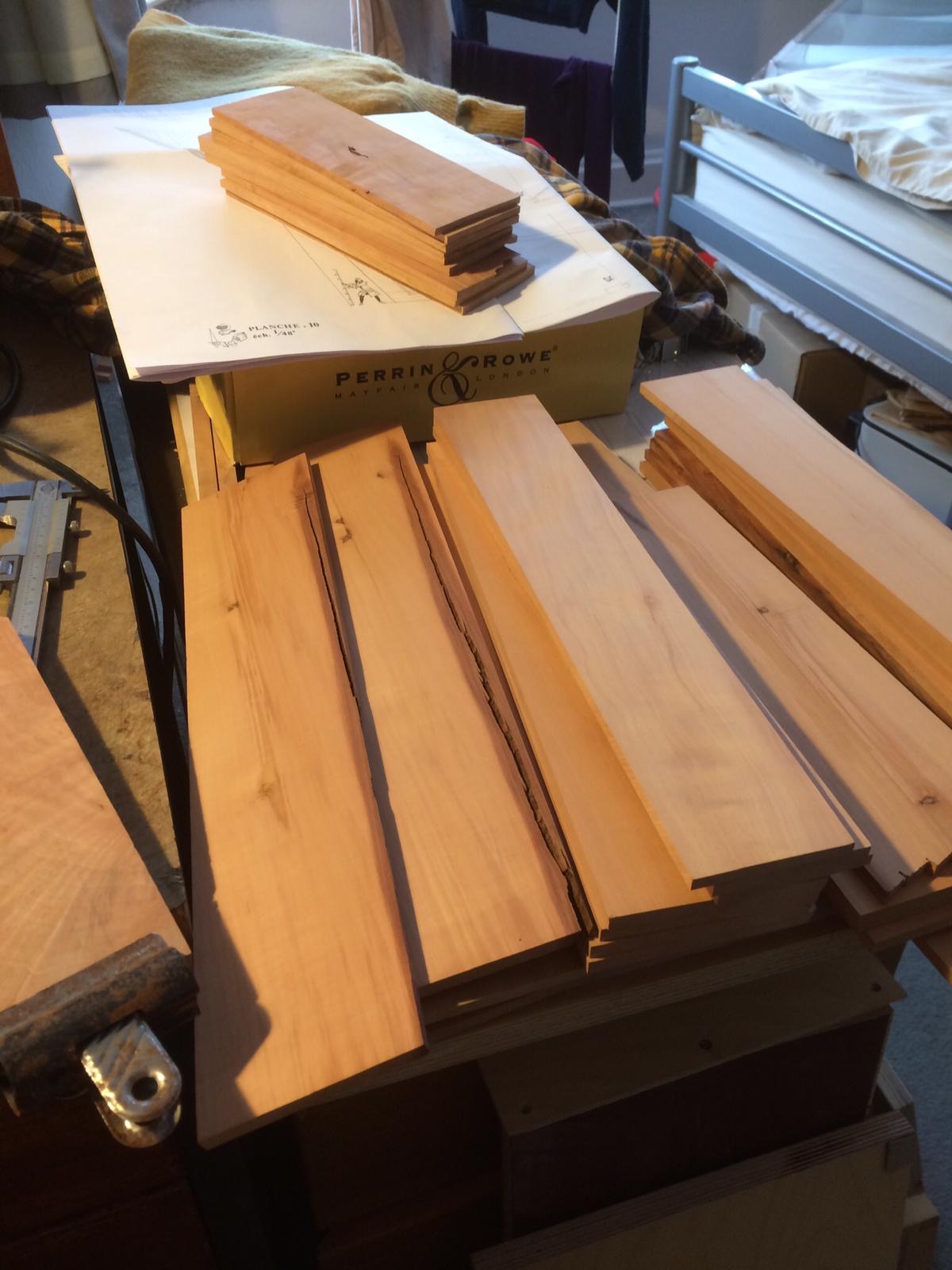 Po zrobieniu drugiej pawęży zabrałem się za przygotowanie drewna na wręgi. Do rozcięcia na potrzebne deseczki użyłem tasmówki, ponieważ daje najmniejszą stratę - ok. 1,2 mm.