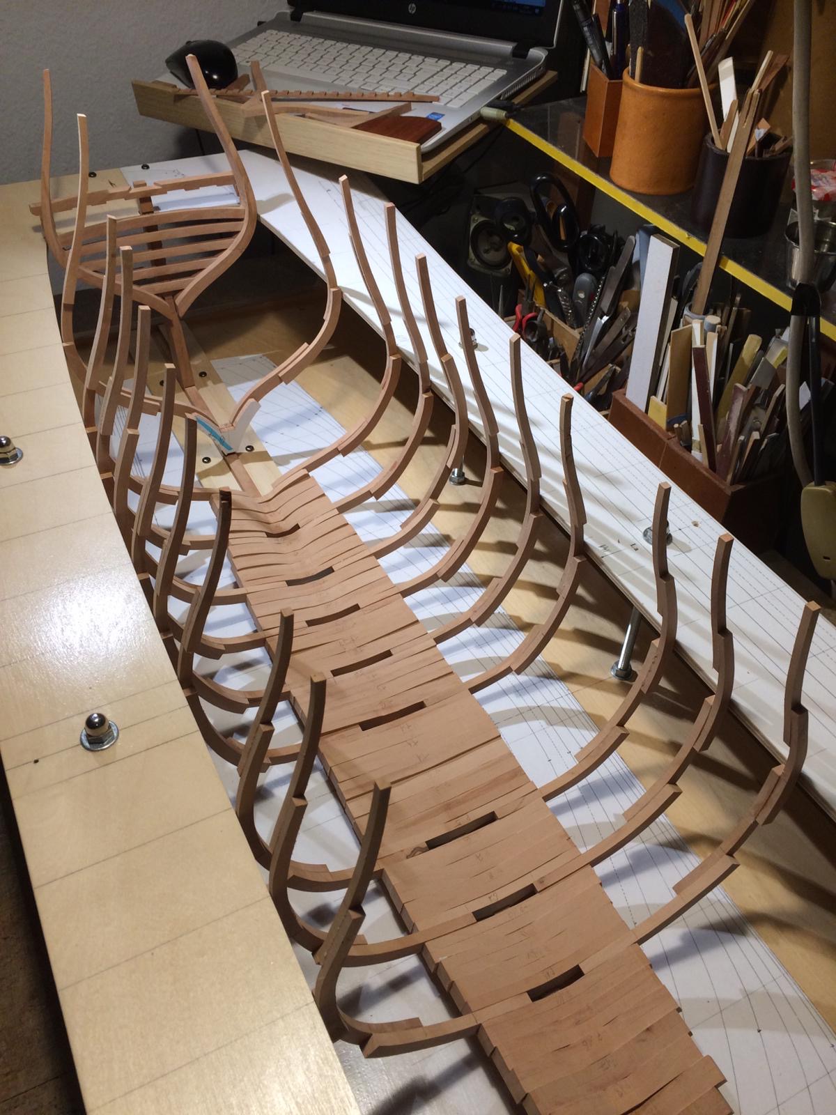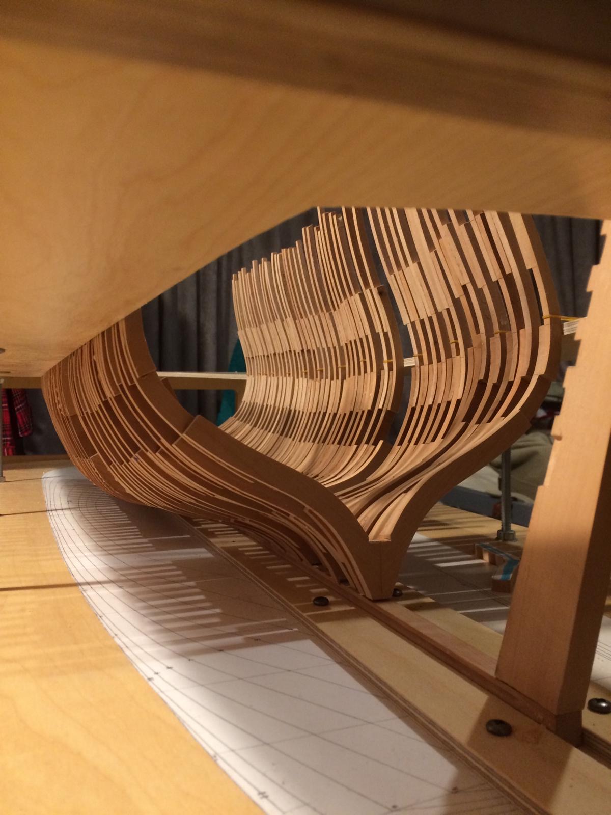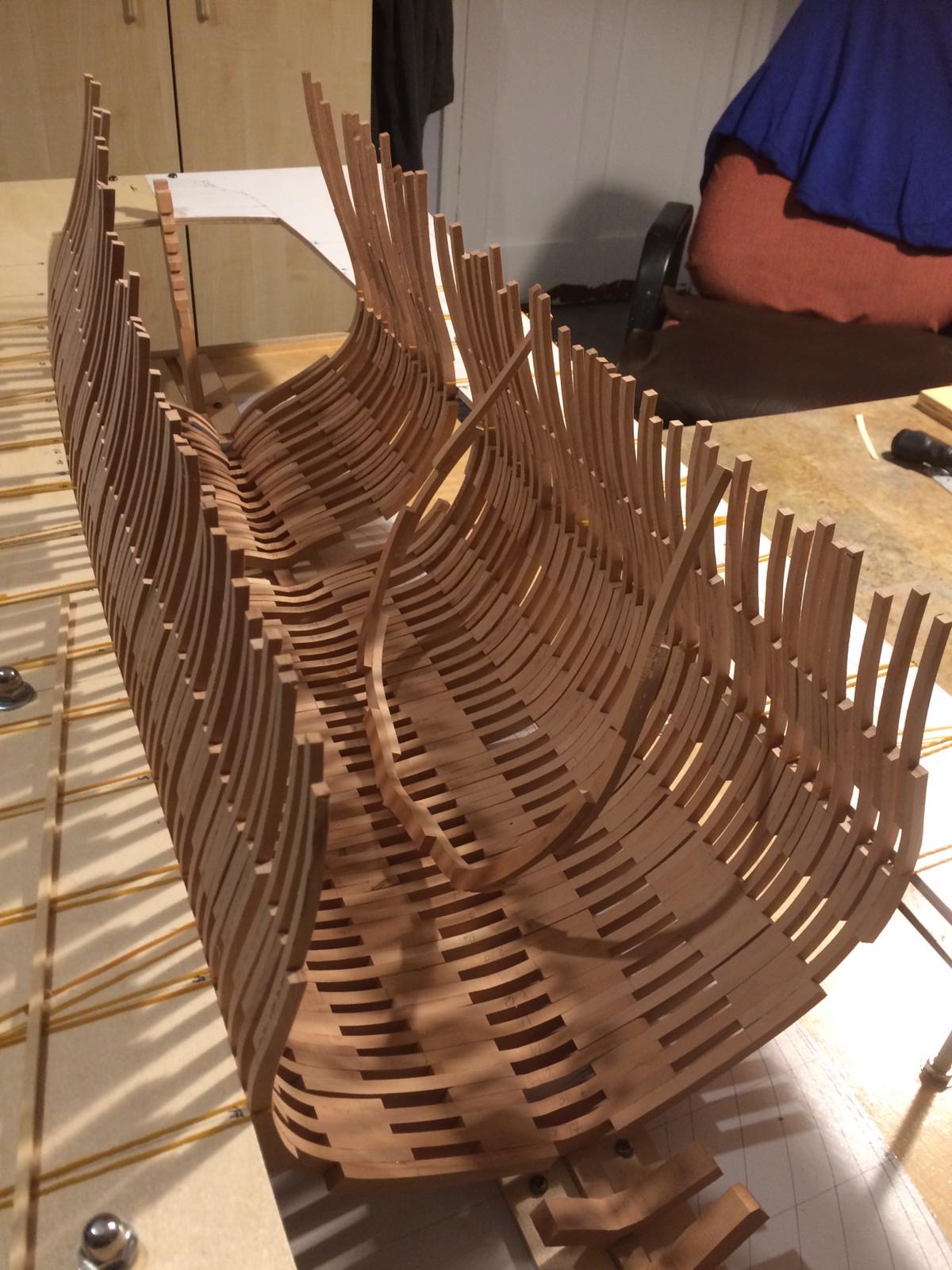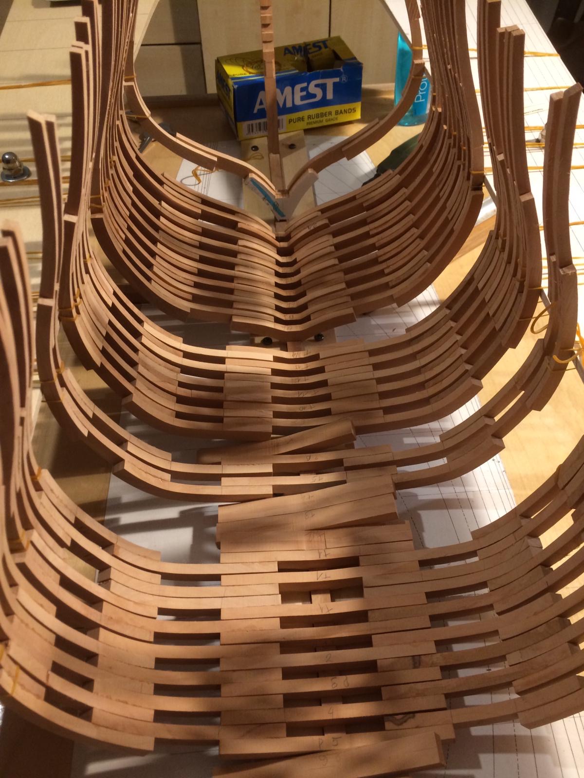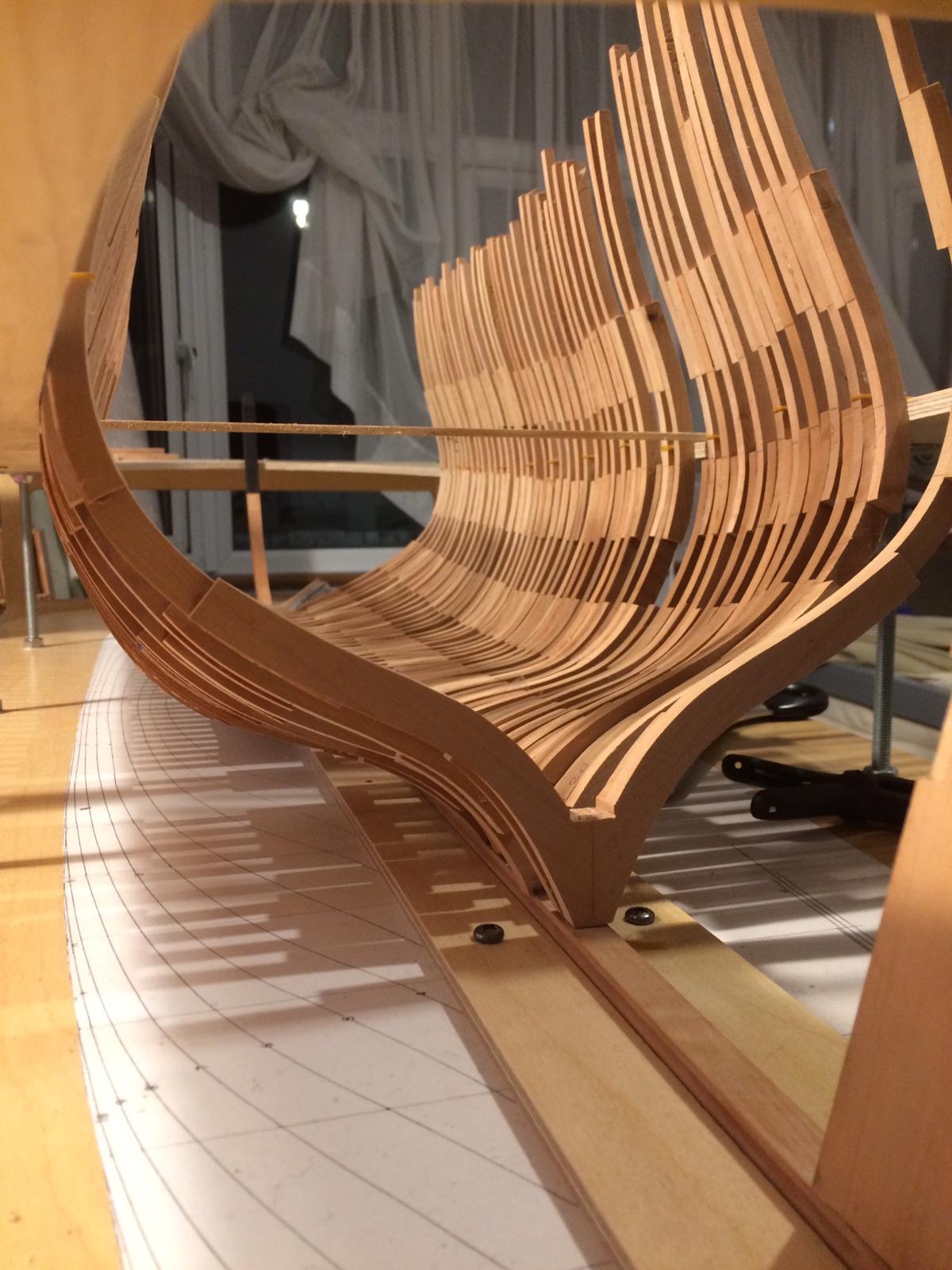 Rozpocząłem wykonanie pawęży rufowej. Elementy natrasowałem bardzo dokładnie i wyciąłem dużą taśmówką. Poniżej relacja.