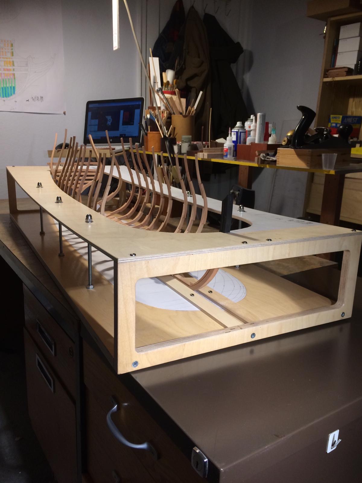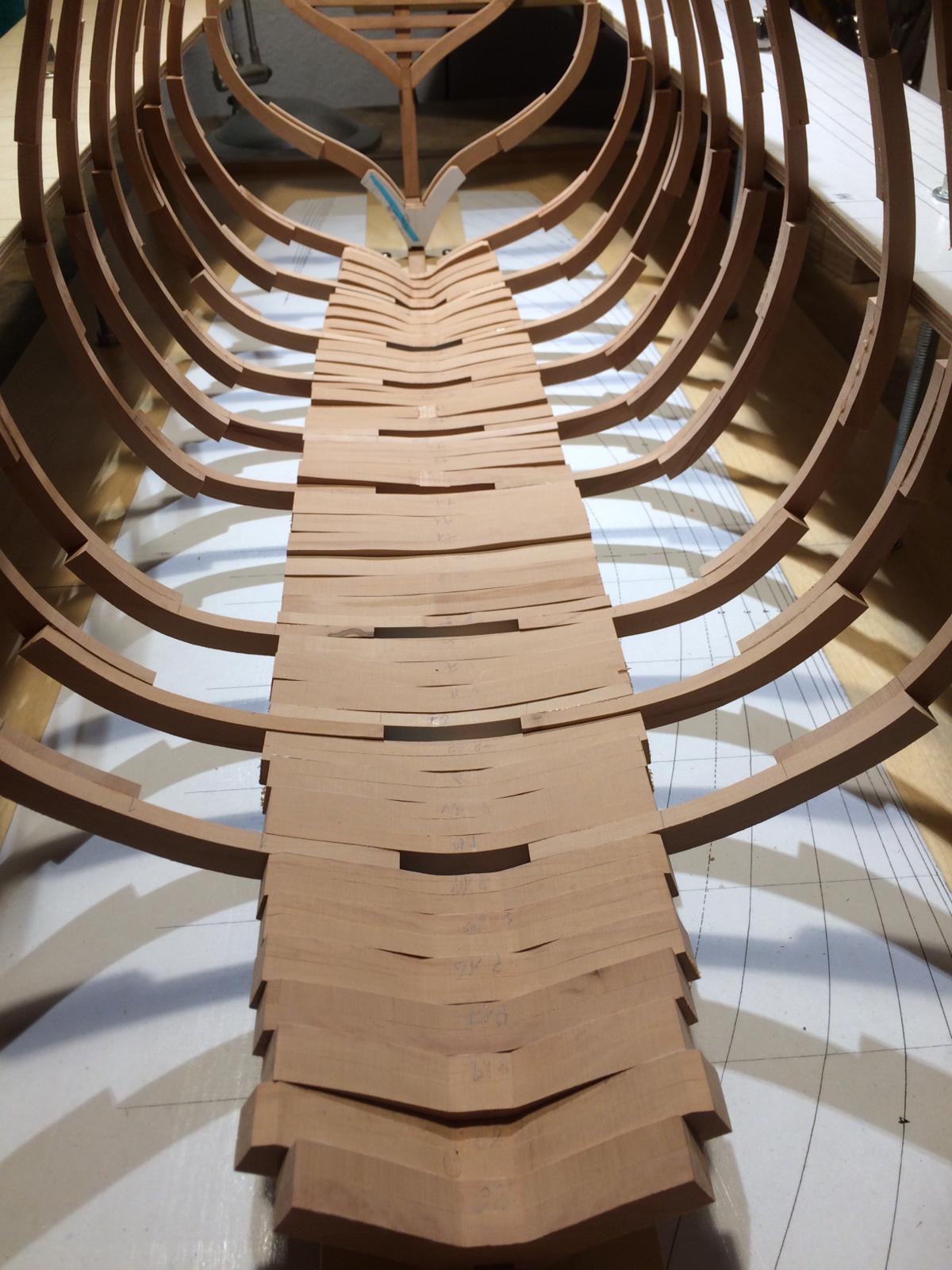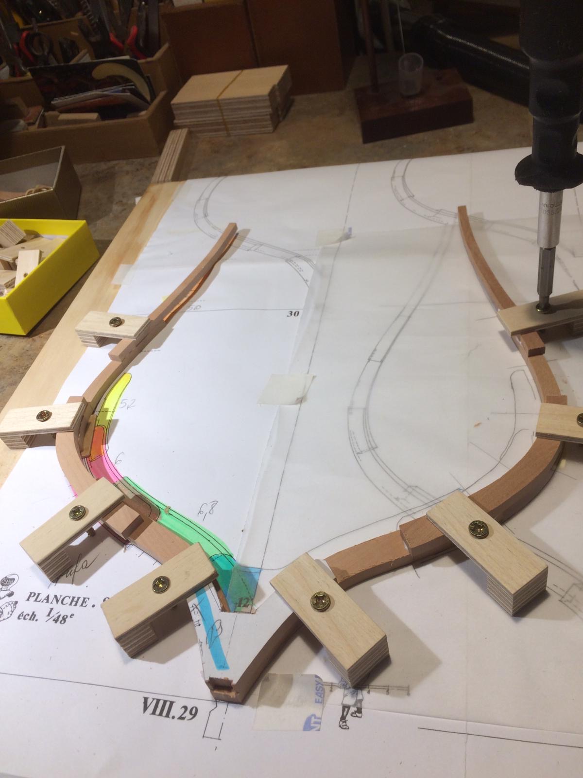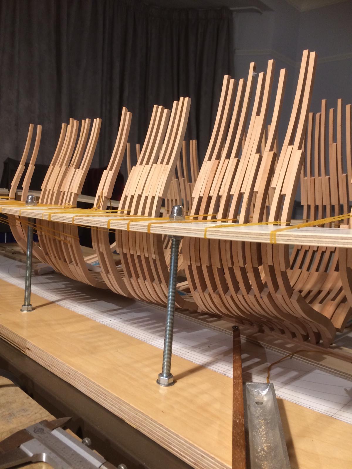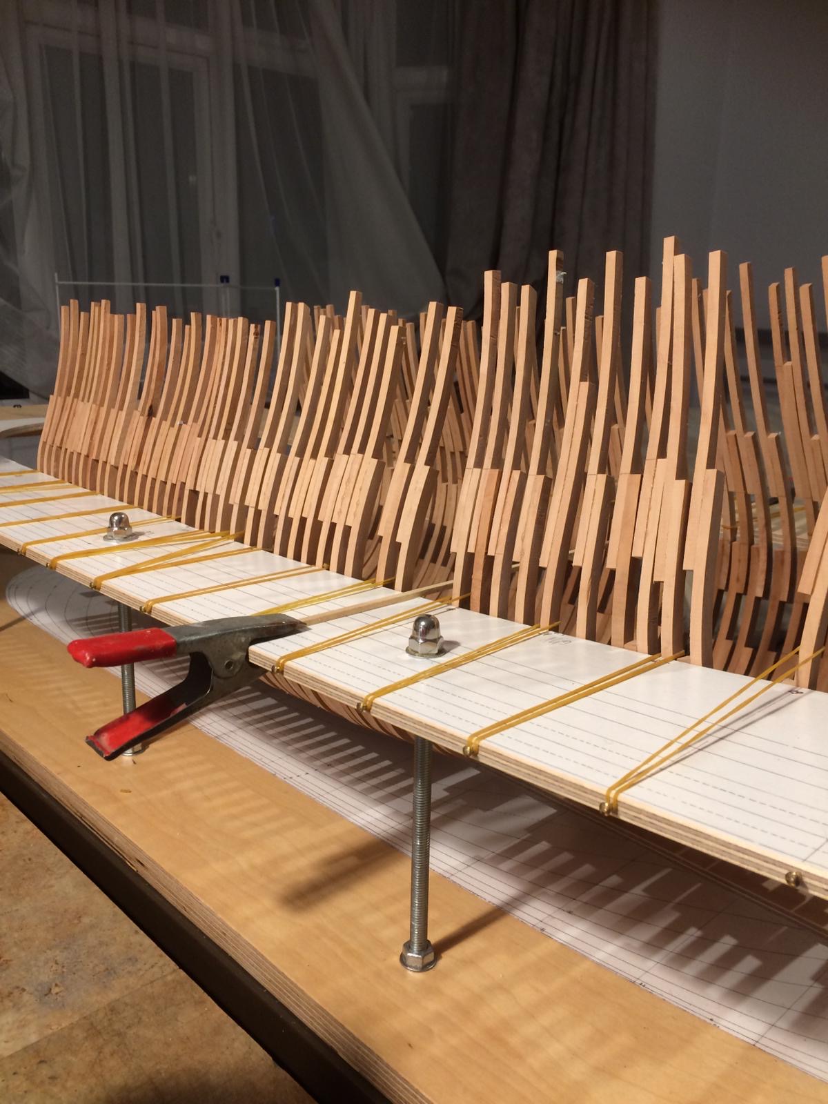 Rozpocząłem wykonanie pawęży rufowej. Elementy natrasowałem bardzo dokładnie i wyciąłem dużą taśmówką. Poniżej relacja.